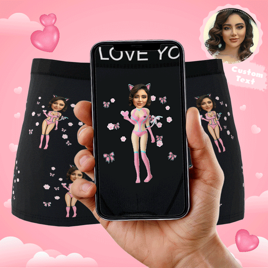 Custom Photo Boxer Bunny Girl Underwear Men's Underwear Gift For Boyfriend AR View Valentine's Day Gift