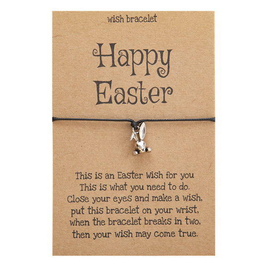 Alloy Rabbit Easter Hand Woven Adjustable Blessing Card