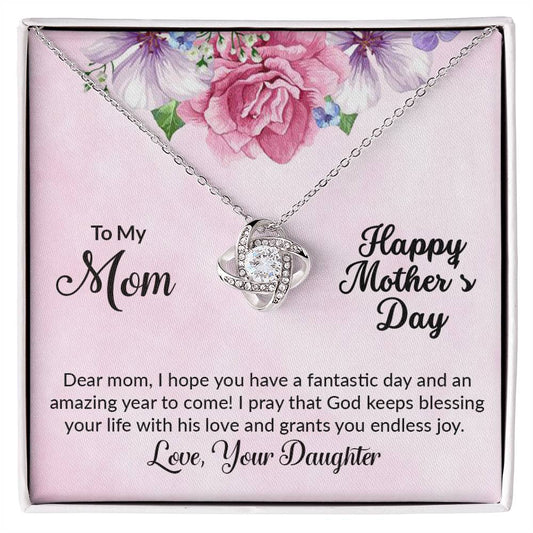Happy Mother's Day Love Knot Necklace (Yellow & White Gold Variants)