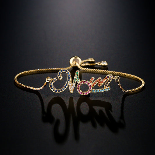 Gold Bracelet Personalized Color Zirconium MOM Jewelry Gift