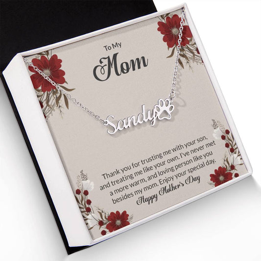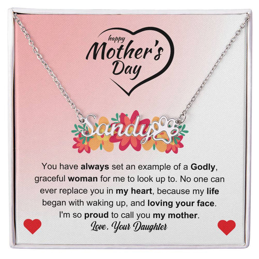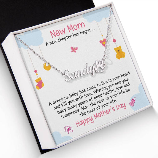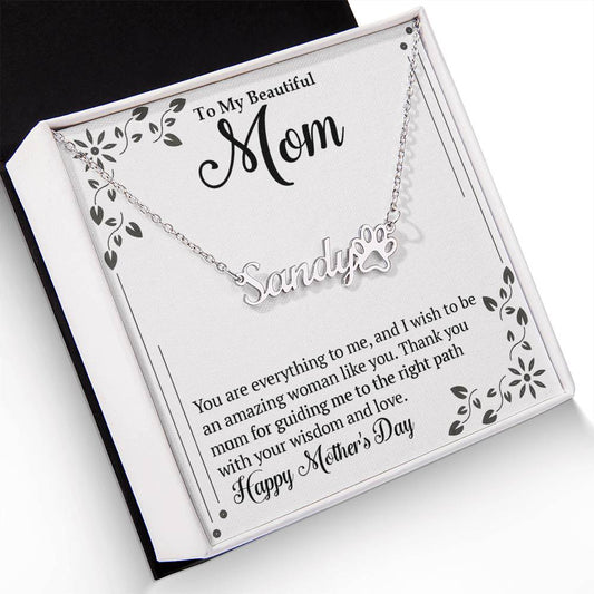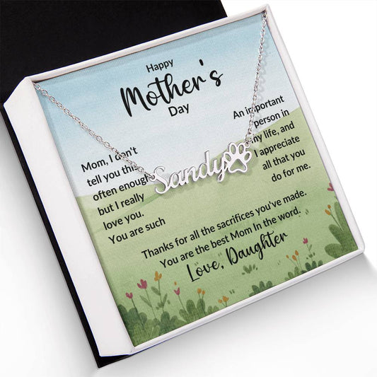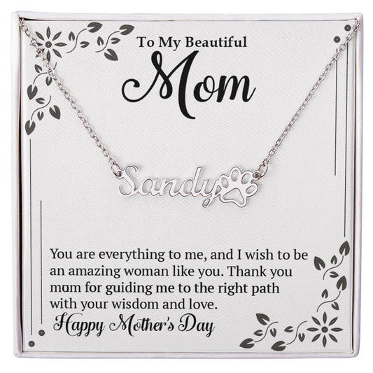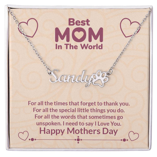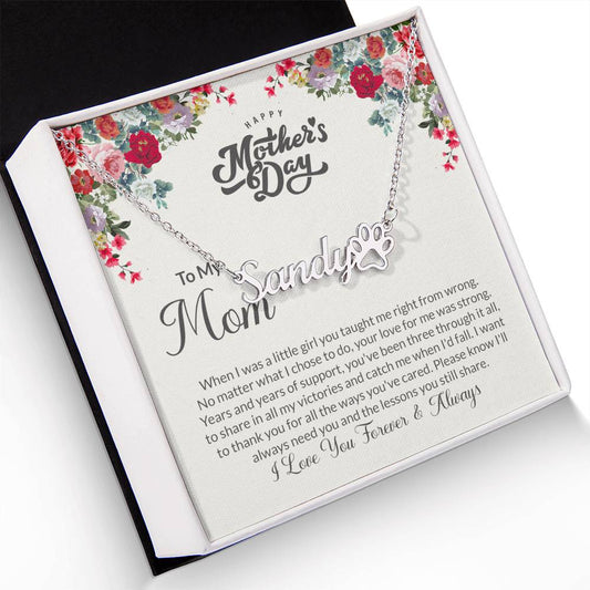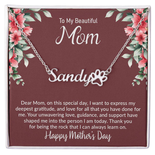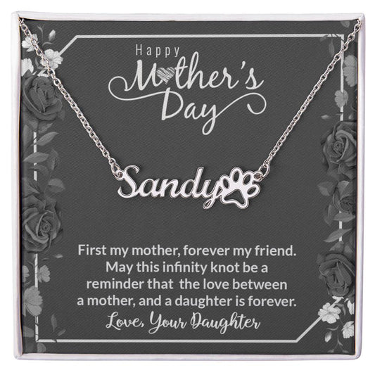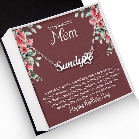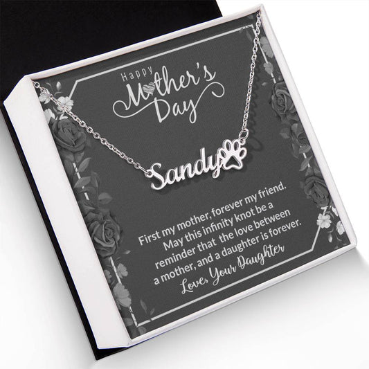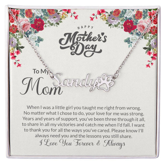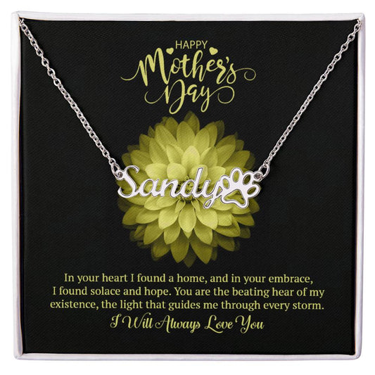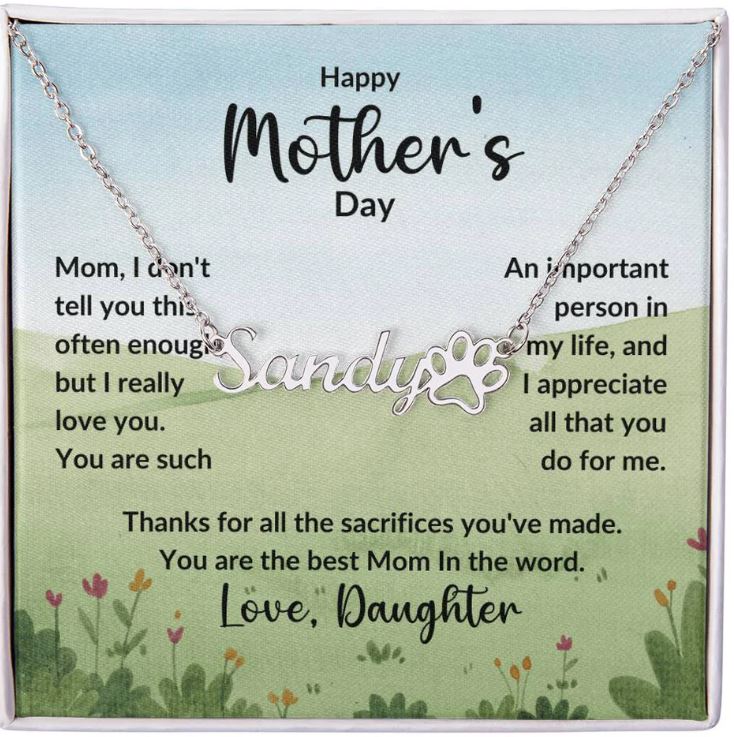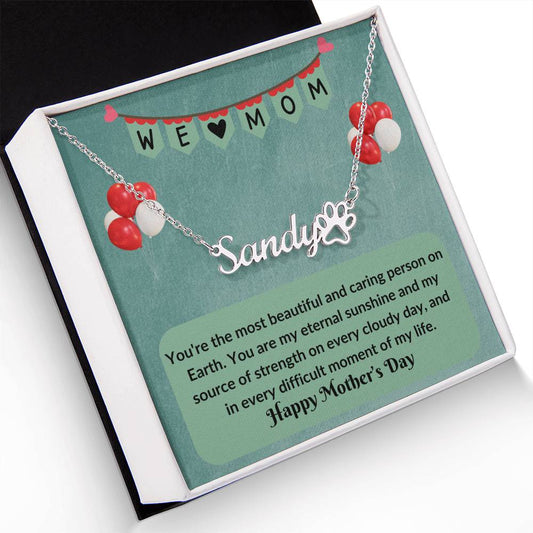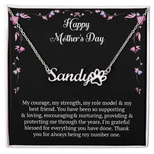 Collection: Name Necklace + Paw Print Character Mother's Day Message