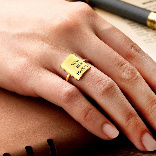 Custom Engraved Rings Square Adjustable Opening Ring for Women
