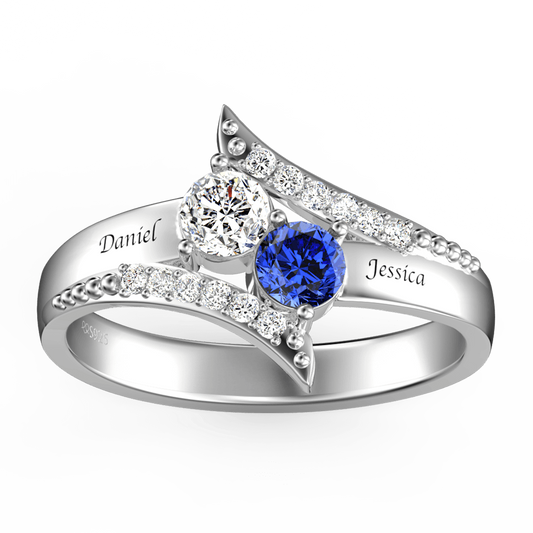 Personalized Two Birthstones Engraved Promise Ring 925 Sterling Silver