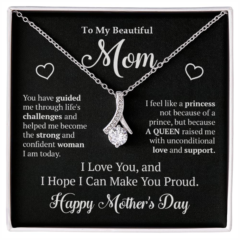 To my Beautiful Mom - You have guided me through life's challenges and helped me become the strong and confident woman I am today. I feel like a princess not because of a prince, but because A QUEEN raised me with unconditional love and support. I Love You, and I Hope I Can Make You Proud. Happy Mother's Day