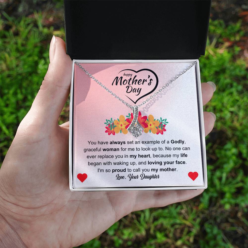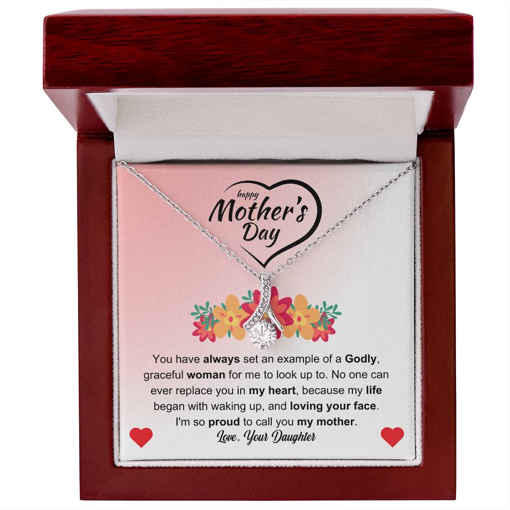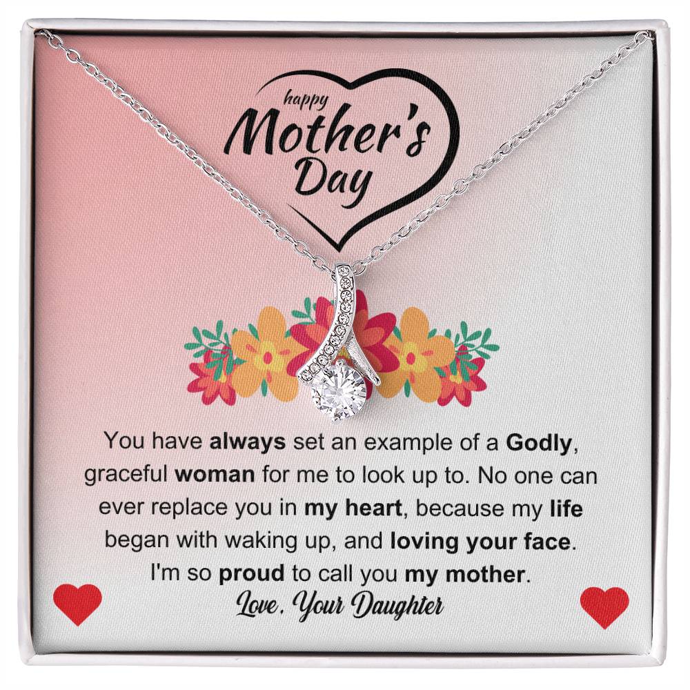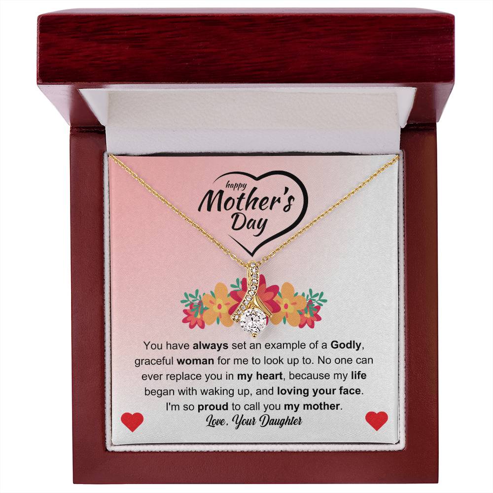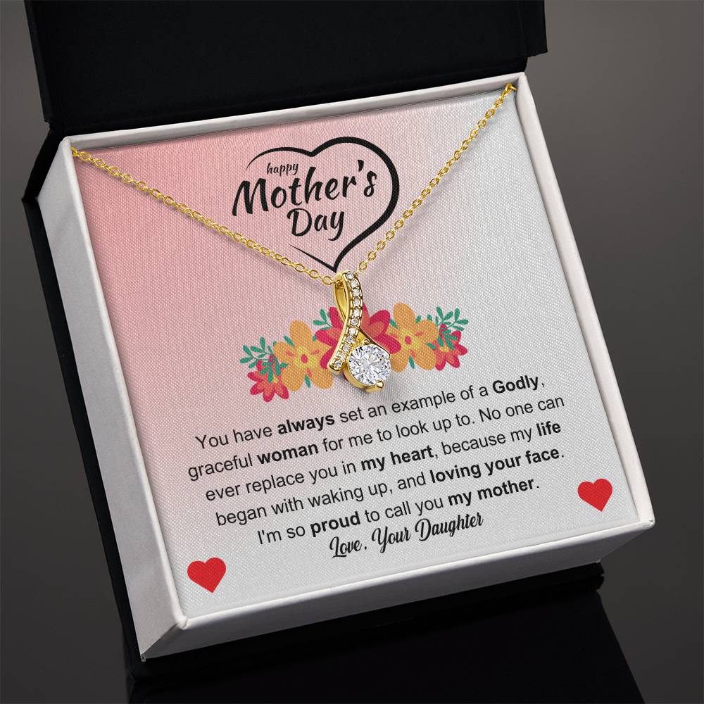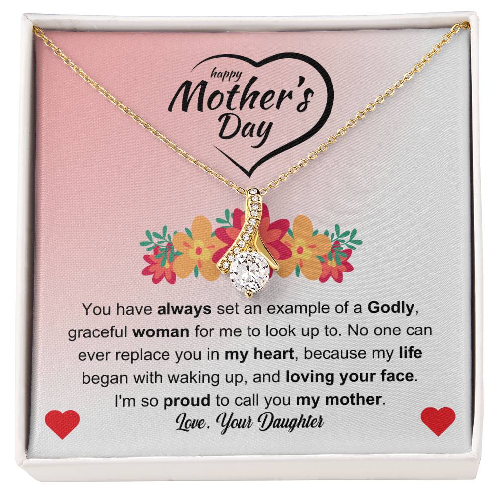 You have always set an example of a Godly, graceful woman for me to look up to. No one can ever replace you in my heart, because my life began with waking up, and loving your face. I'm so proud to call you my mother. Love Your Daughter
