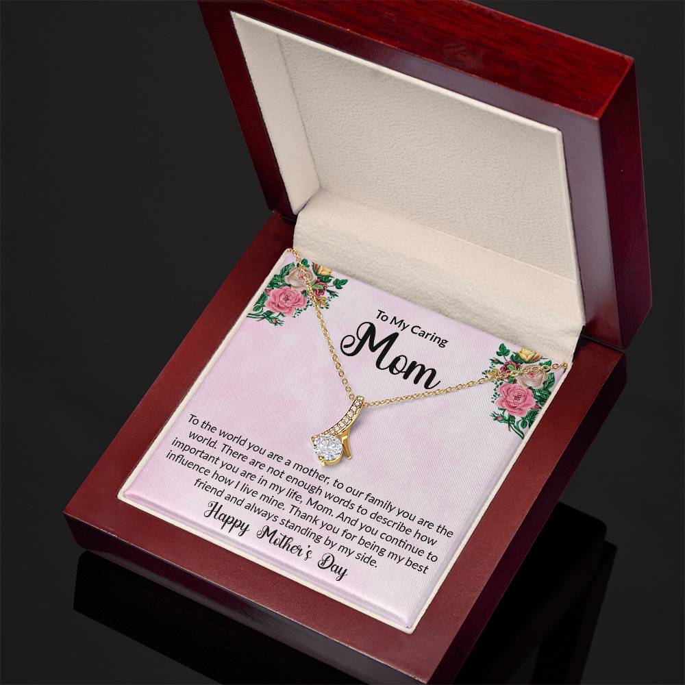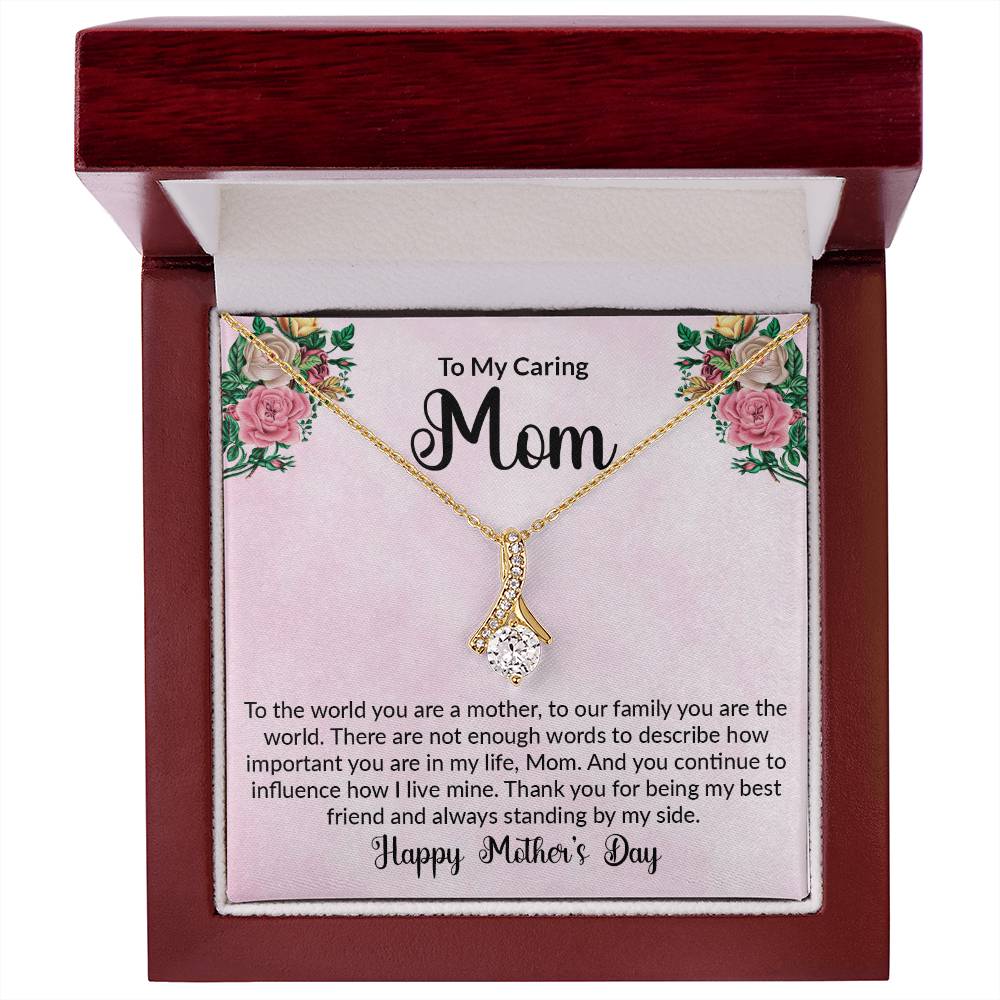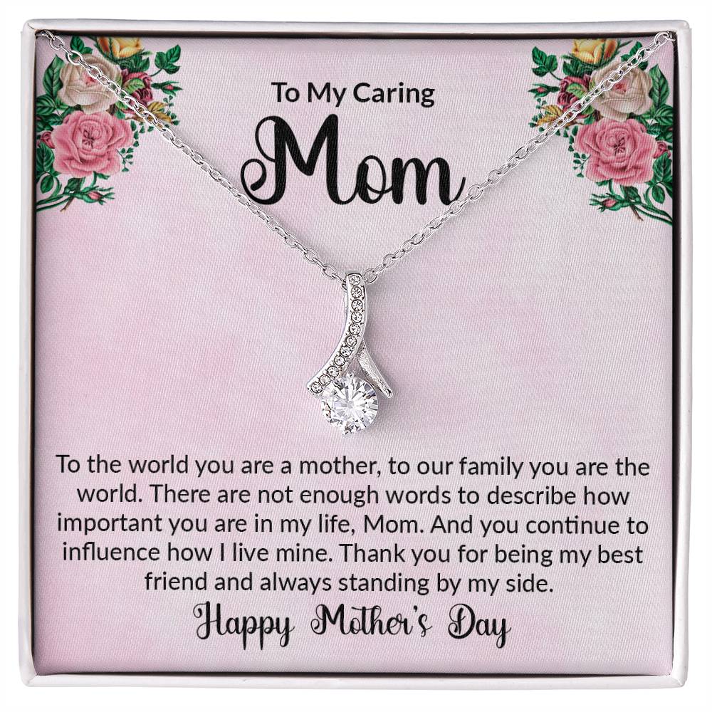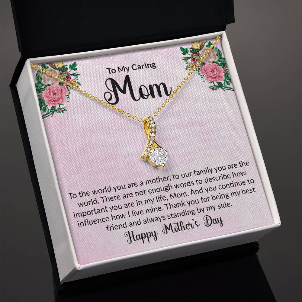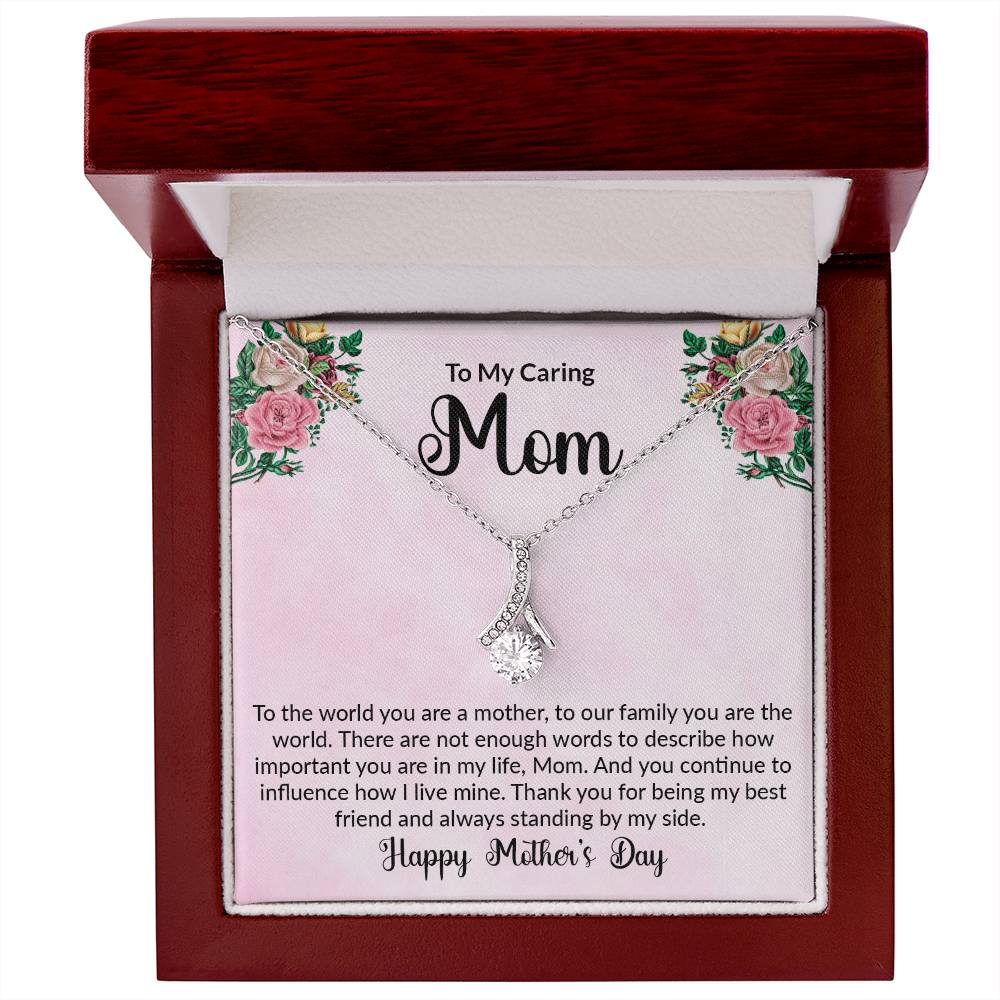 Imagine her reaction when she opens this stunning gift! The Alluring Beauty necklace features a petite ribbon shaped pendant that is sure to dazzle your special someone. Whether it's a birthday or anniversary, make sure to get her a gift she will love for years to come.