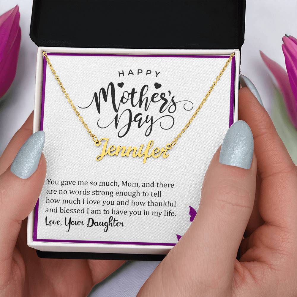 Give your special someone a custom necklace made just for them! Our Personalized Name Necklace is the perfect gift for your loved ones and will become a versatile accessory for any occasion. From a heart-warming holiday present, anniversary or birthday gift, or just because, this unique necklace adds a trendy touch to any outfit.