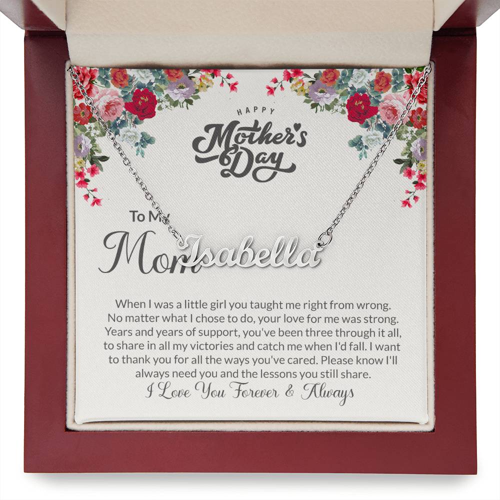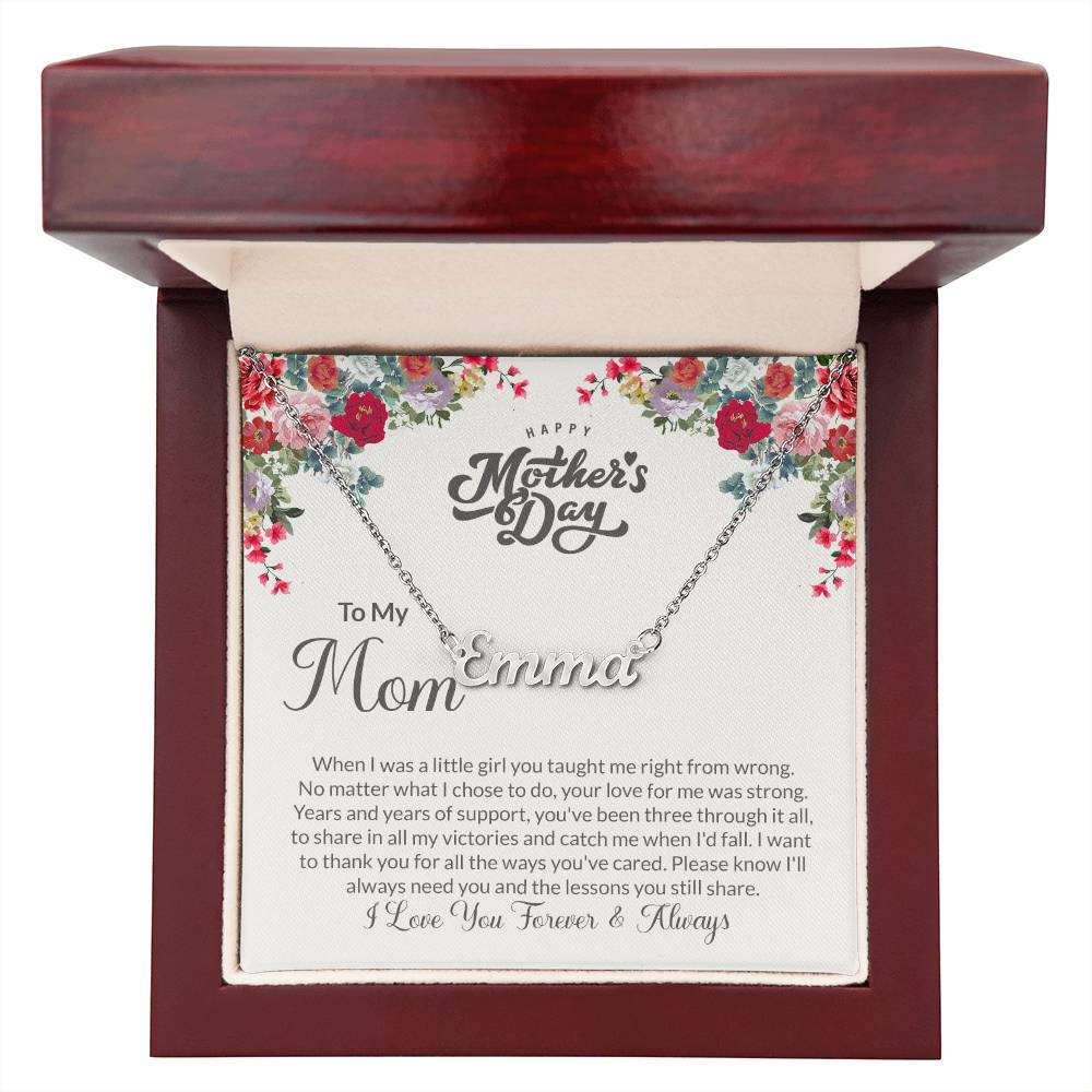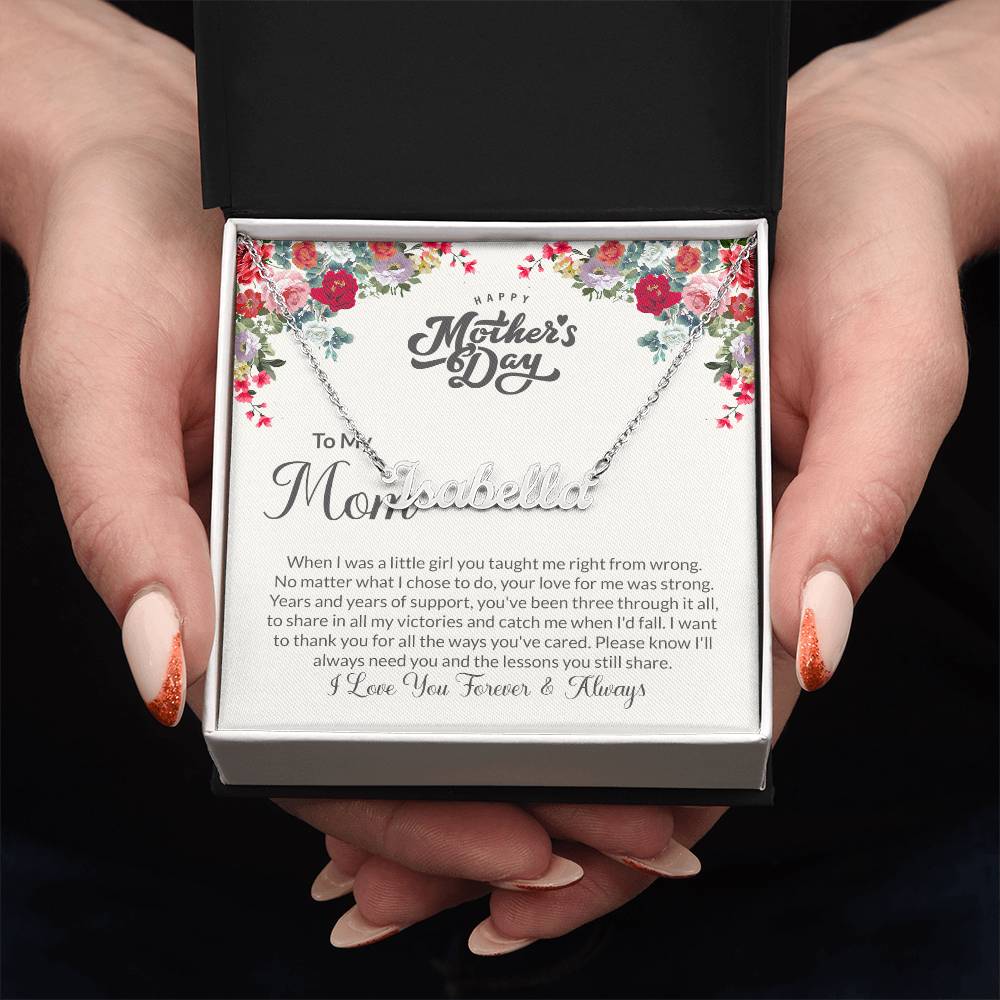 To My Mom, When I was a little girl you taught me right from wrong. No matter what I chose to do, your love for me was strong. Years and years of support,