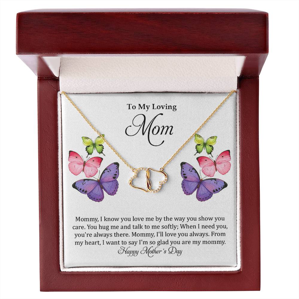 To My Loving Mom - Mommy, I know you love me by the way you show you care. You hug me and talk to me softly; When I need you, you're always there. Mommy, I'll love you always. From my heart, I want to say I'm so glad you are my mommy. Happy Mother's Day