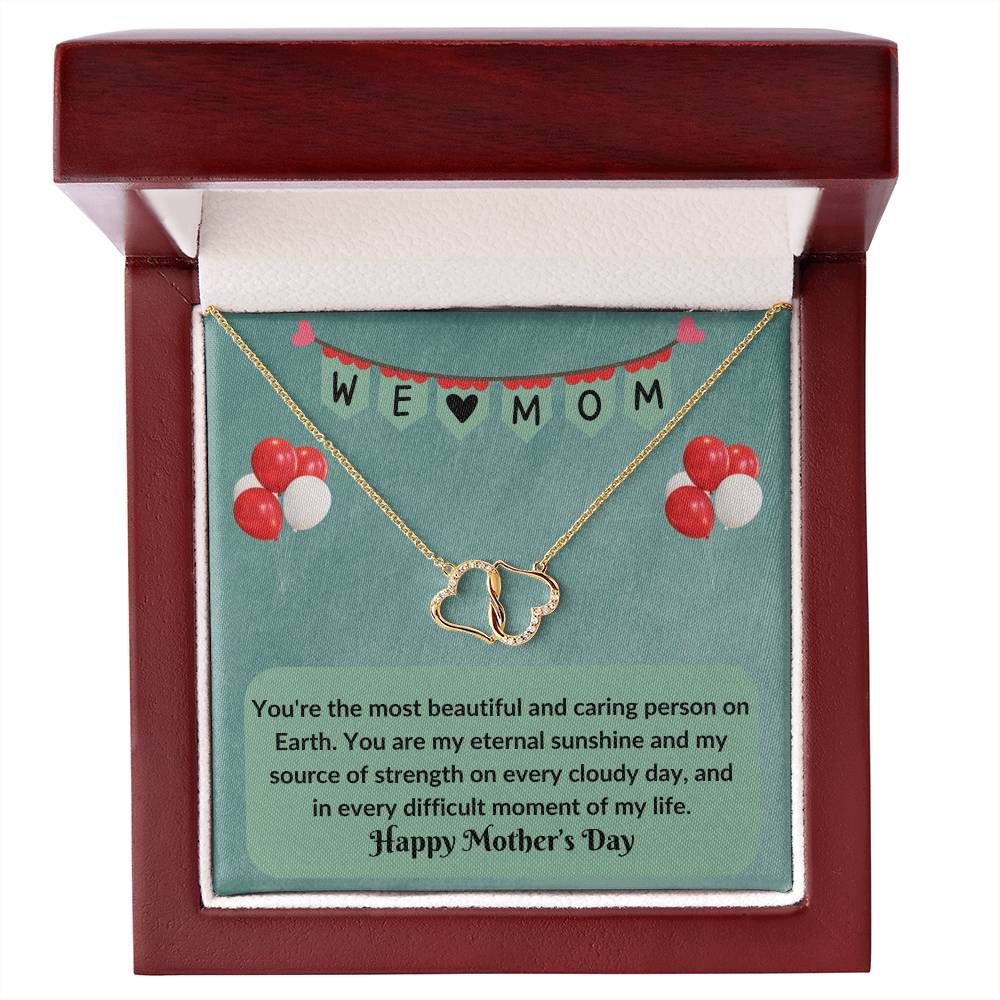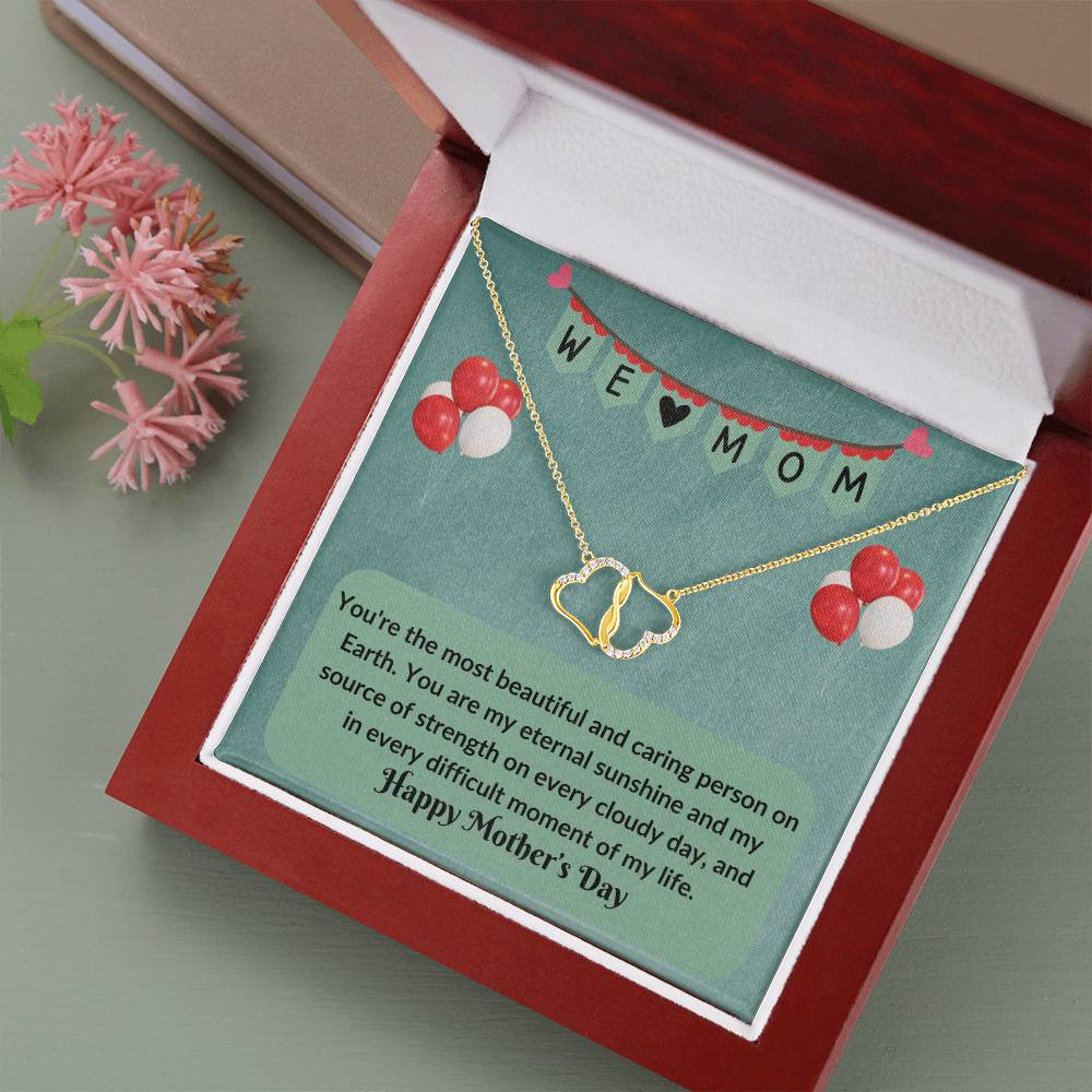 We Mom,You're the most beautiful and caring person on Earth. You are my eternal sunshine and my source of strength on every cloudy day, and in every difficult moment of my life. Happy Mother's Day