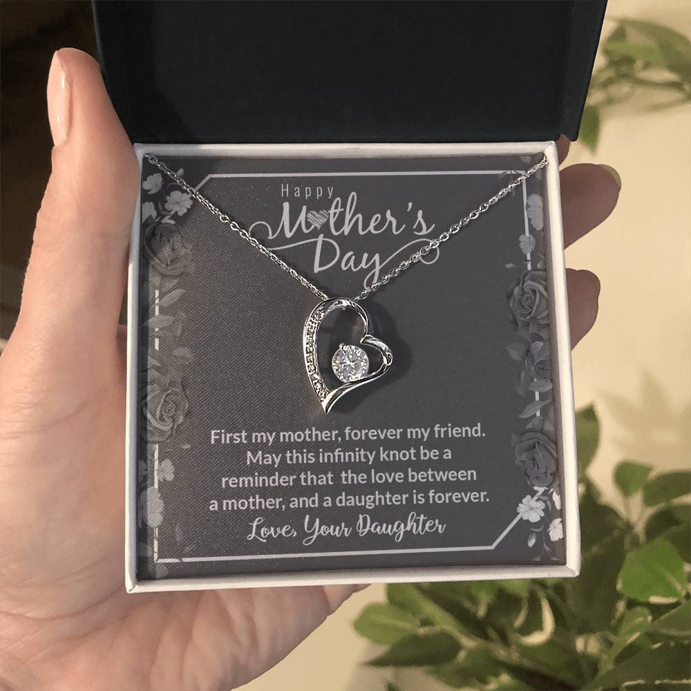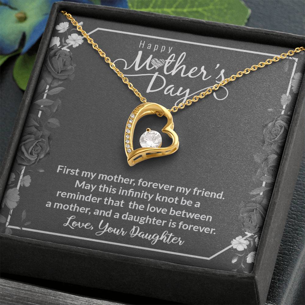 The dazzling Forever Love Necklace is sure to make her heart melt! This necklace features a stunning 6.5mm CZ crystal surrounded by a polished heart pendant embellished with smaller crystals to add extra sparkle and shine. Beautifully crafted with either a white gold or yellow gold finish, be sure to give her a classic gift she can enjoy everyday.