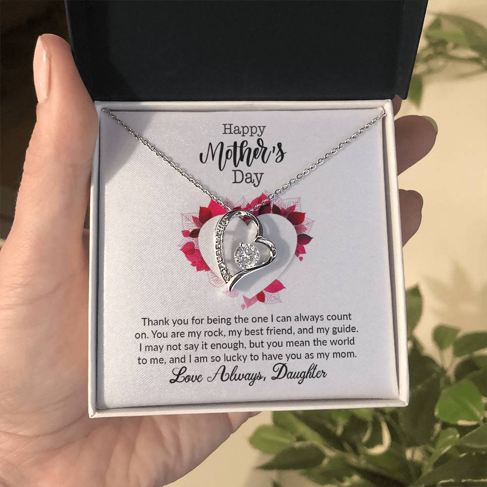 The dazzling Forever Love Necklace is sure to make her heart melt! This necklace features a stunning 6.5mm CZ crystal surrounded by a polished heart pendant embellished with smaller crystals to add extra sparkle and shine. Beautifully crafted with either a white gold or yellow gold finish, be sure to give her a classic gift she can enjoy everyday.