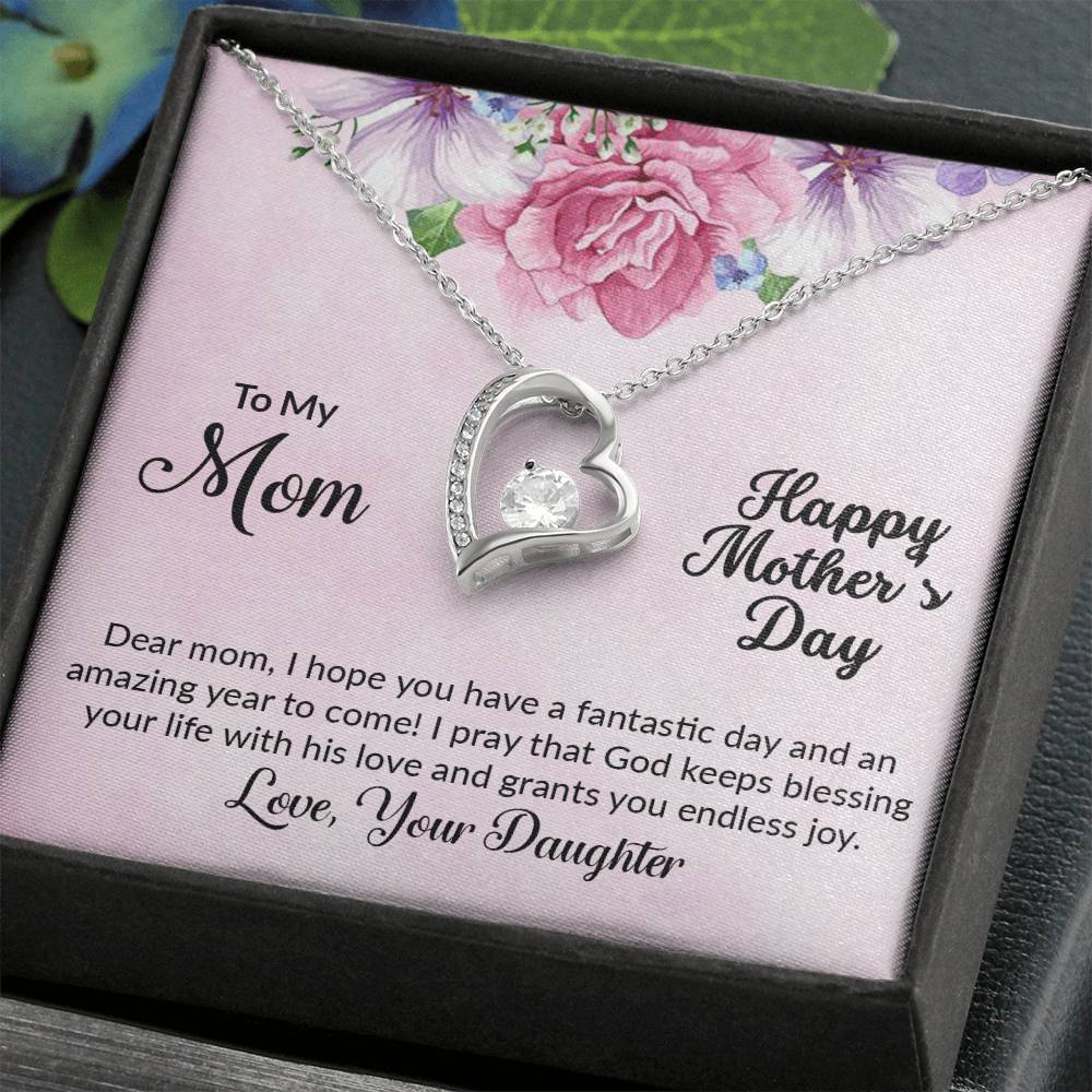 The dazzling Forever Love Necklace is sure to make her heart melt! This necklace features a stunning 6.5mm CZ crystal surrounded by a polished heart pendant embellished with smaller crystals to add extra sparkle and shine. Beautifully crafted with either a white gold or yellow gold finish, be sure to give her a classic gift she can enjoy everyday.