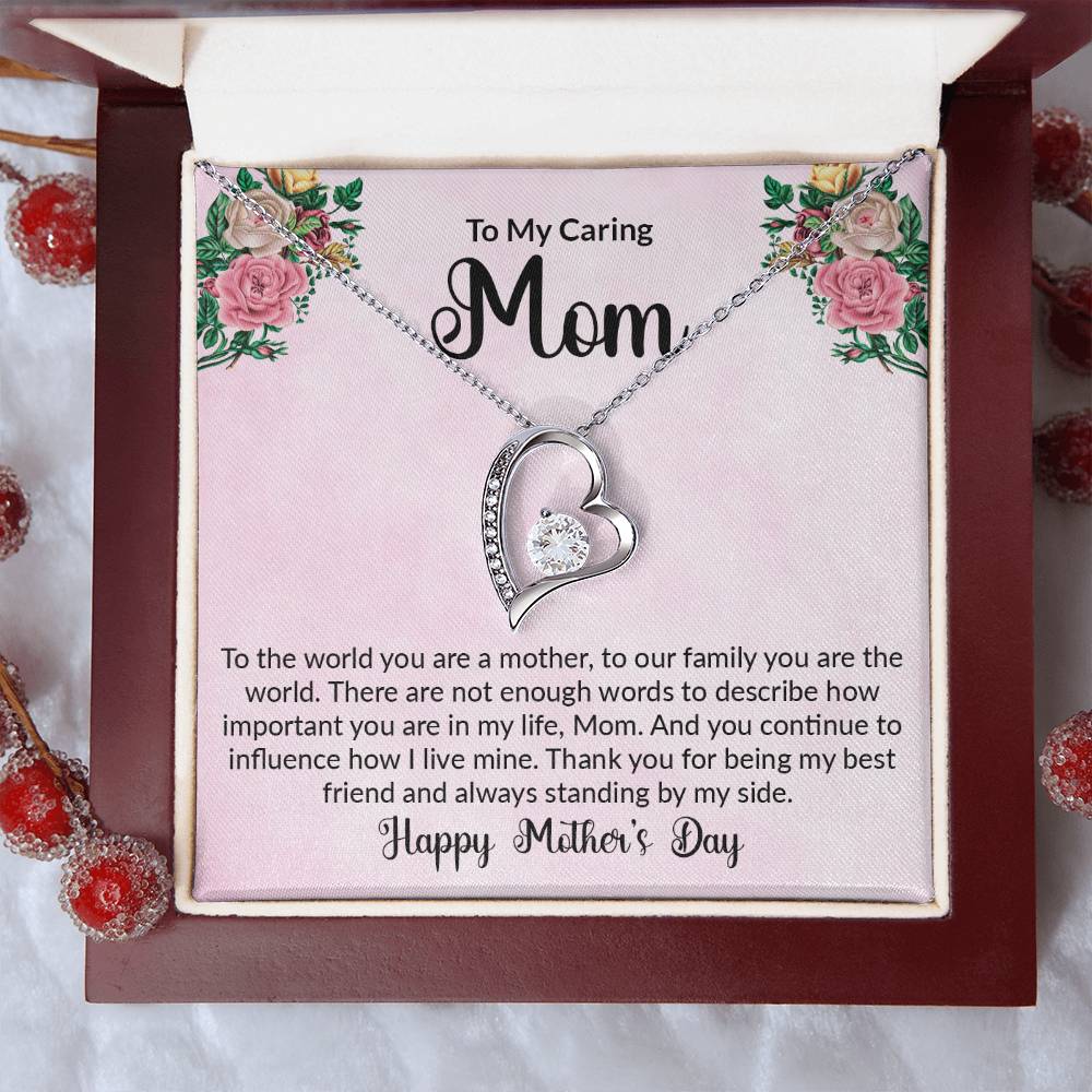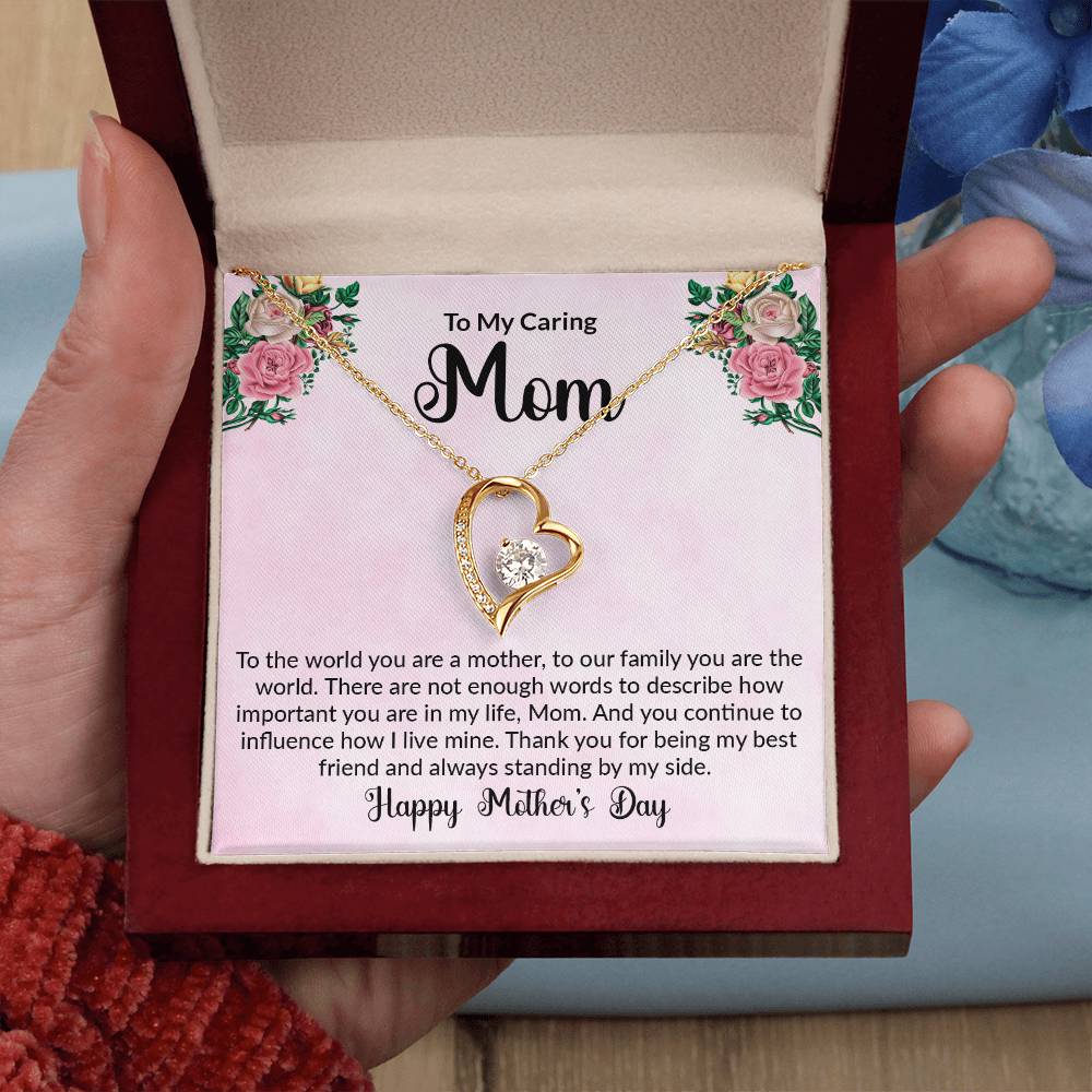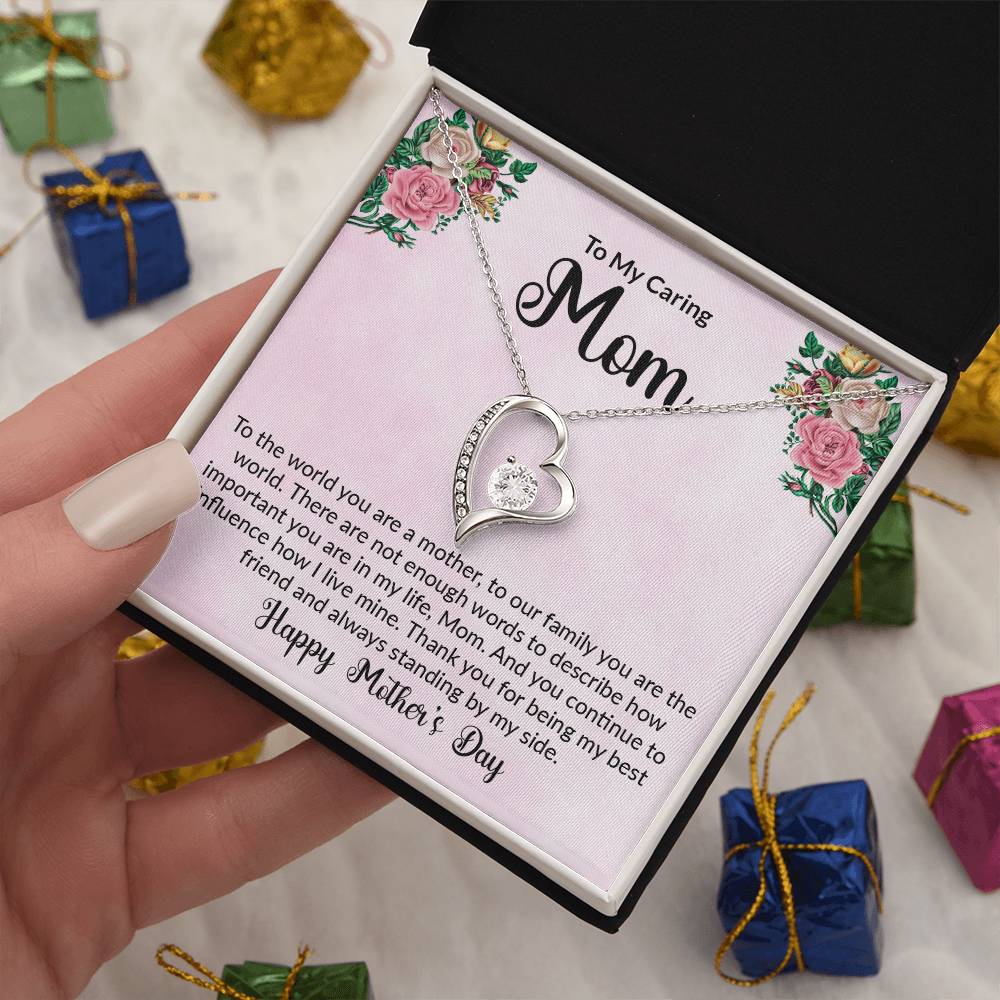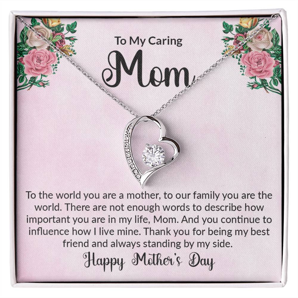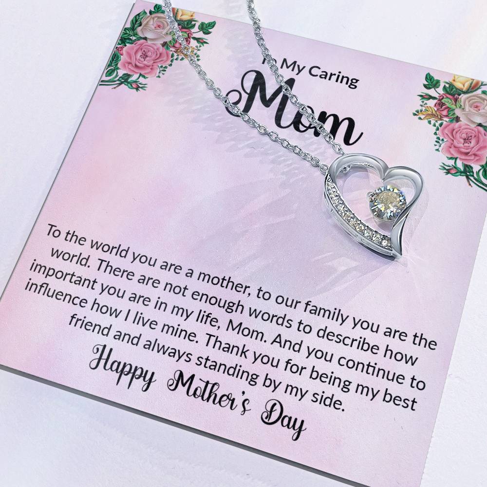 The dazzling Forever Love Necklace is sure to make her heart melt! This necklace features a stunning 6.5mm CZ crystal surrounded by a polished heart pendant embellished with smaller crystals to add extra sparkle and shine. Beautifully crafted with either a white gold or yellow gold finish, be sure to give her a classic gift she can enjoy everyday.