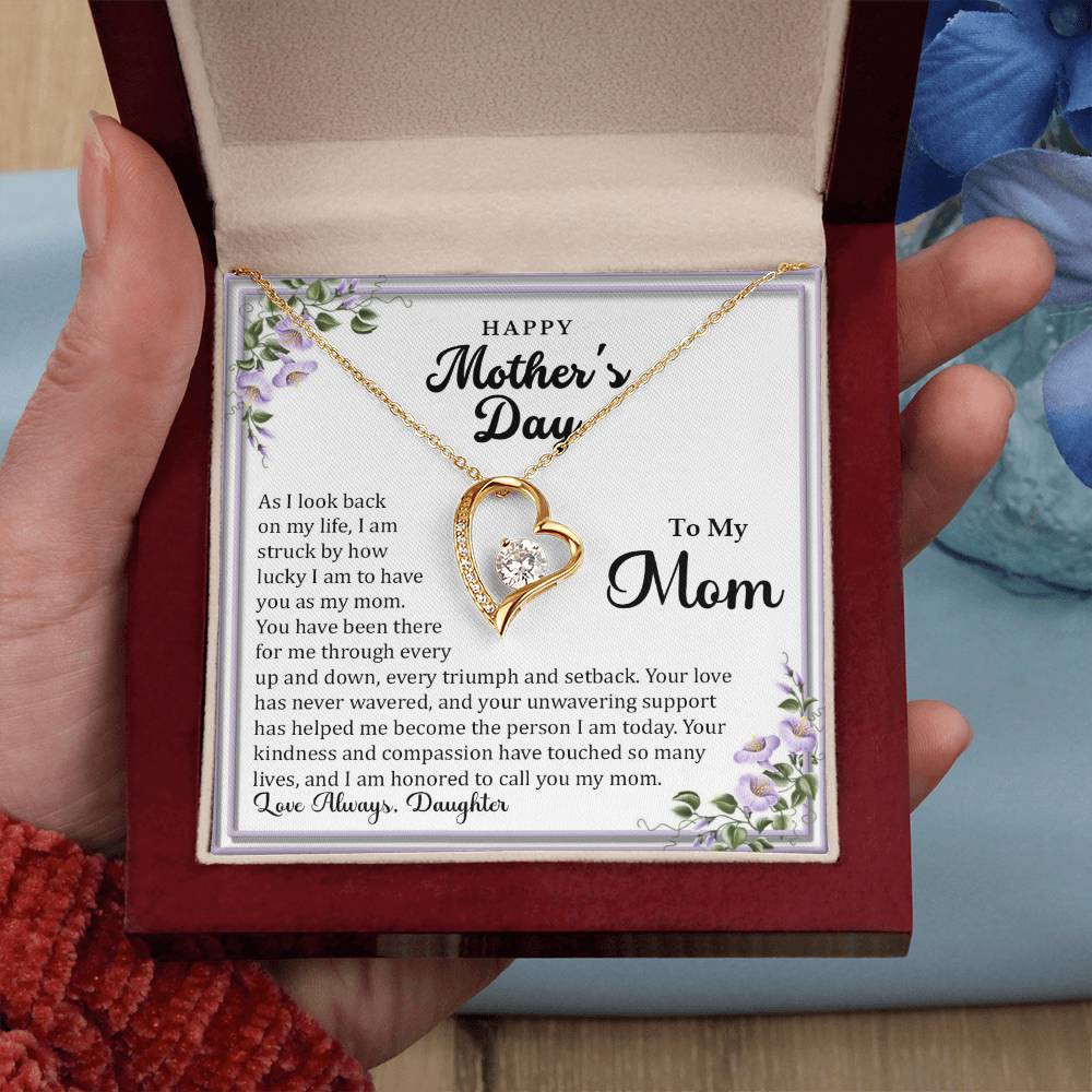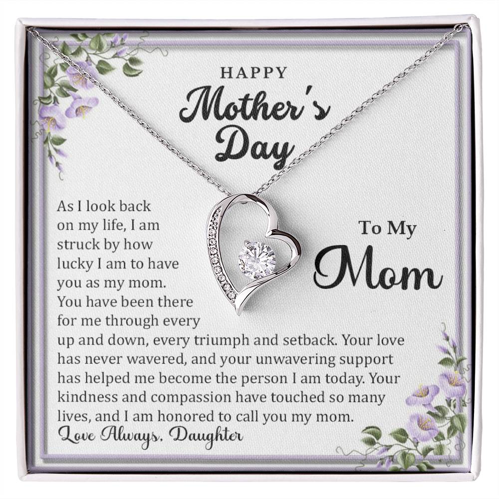 As I look backon my life, I am struck by how lucky I am to have you as my mom.