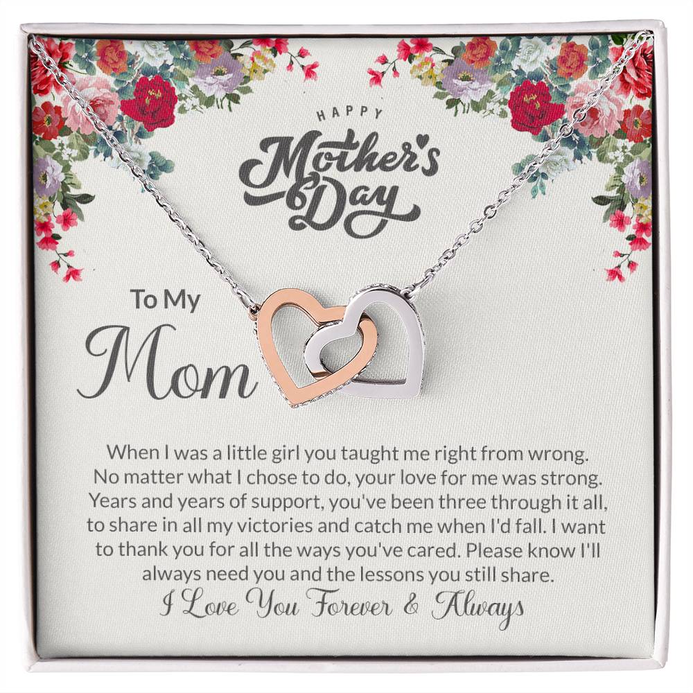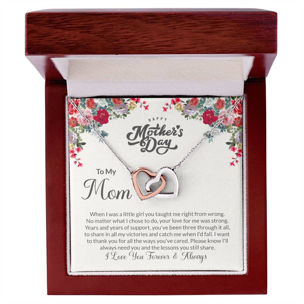 To My Mom, When I was a little girl you taught me right from wrong. No matter what I chose to do, your love for me was strong. Years and years of support,
