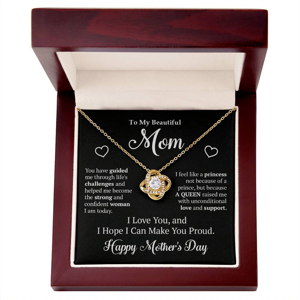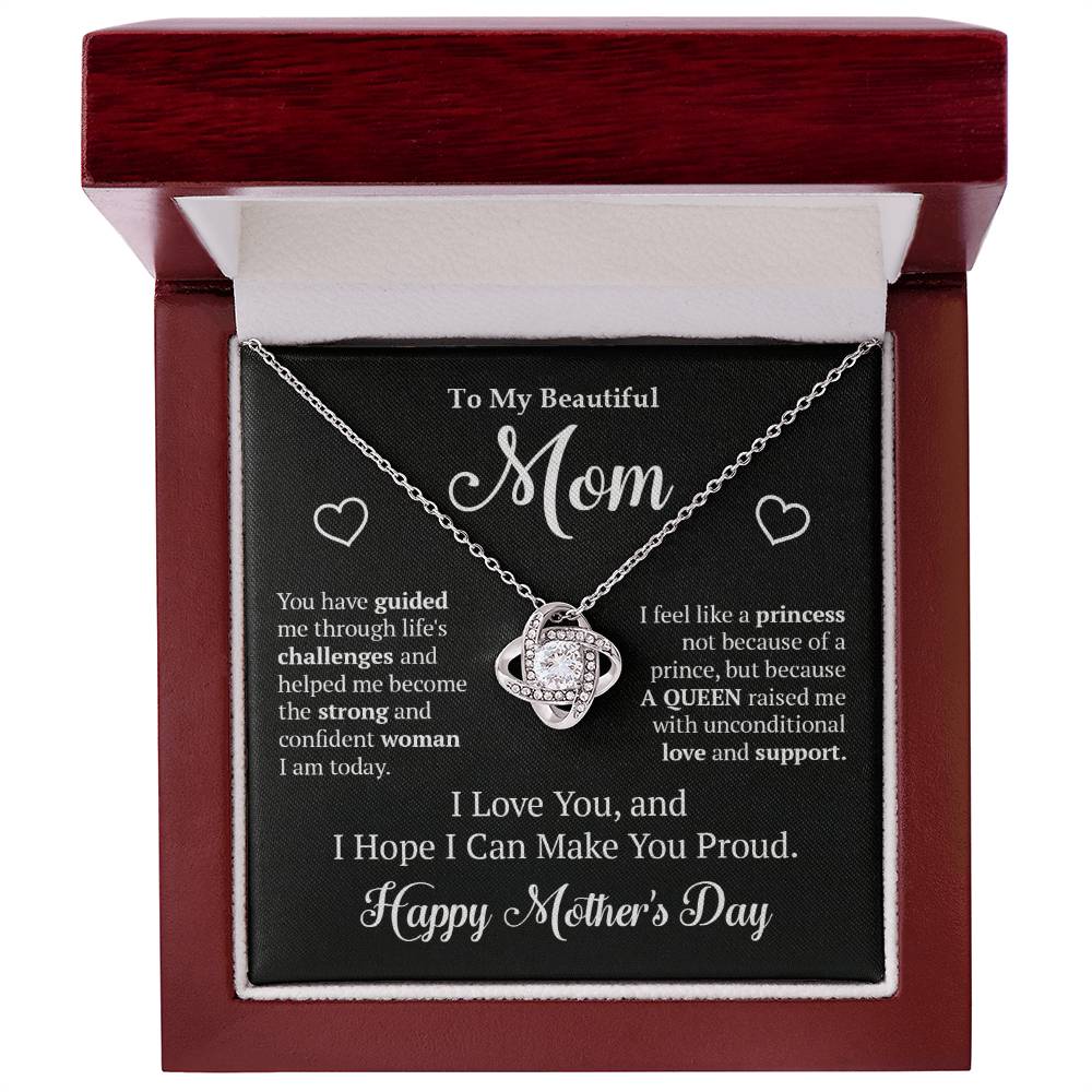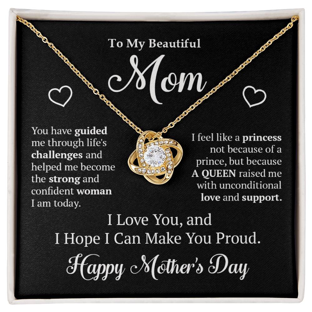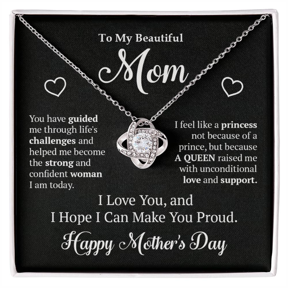 To my Beautiful Mom - You have guided me through life's challenges and helped me become the strong and confident woman I am today. I feel like a princess not because of a prince, but because A QUEEN raised me with unconditional love and support. I Love You, and I Hope I Can Make You Proud. Happy Mother's Day