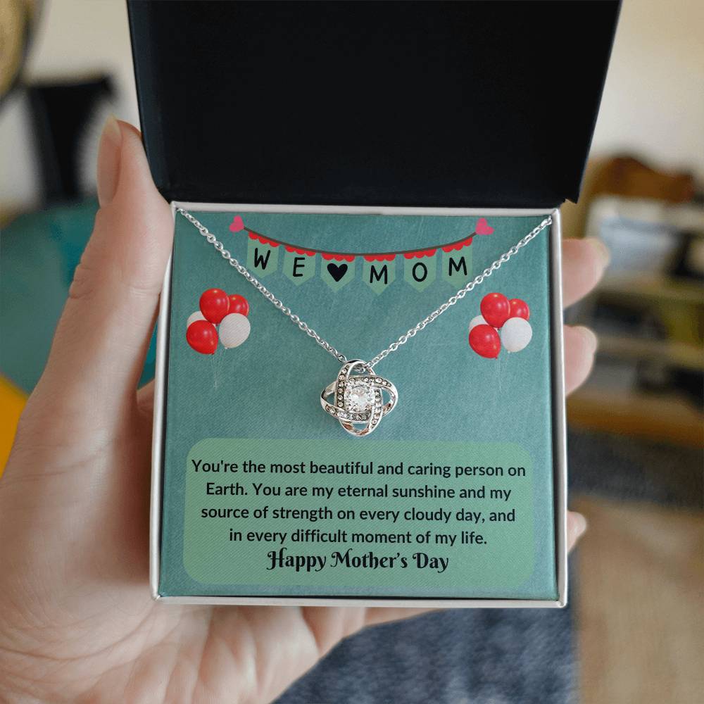 Imagine her reaction receiving this beautiful Love Knot Necklace. Representing an unbreakable bond between two souls, this piece features a beautiful pendant embellished with premium cubic zirconia crystals. Surprise your loved one with this gorgeous gift today!