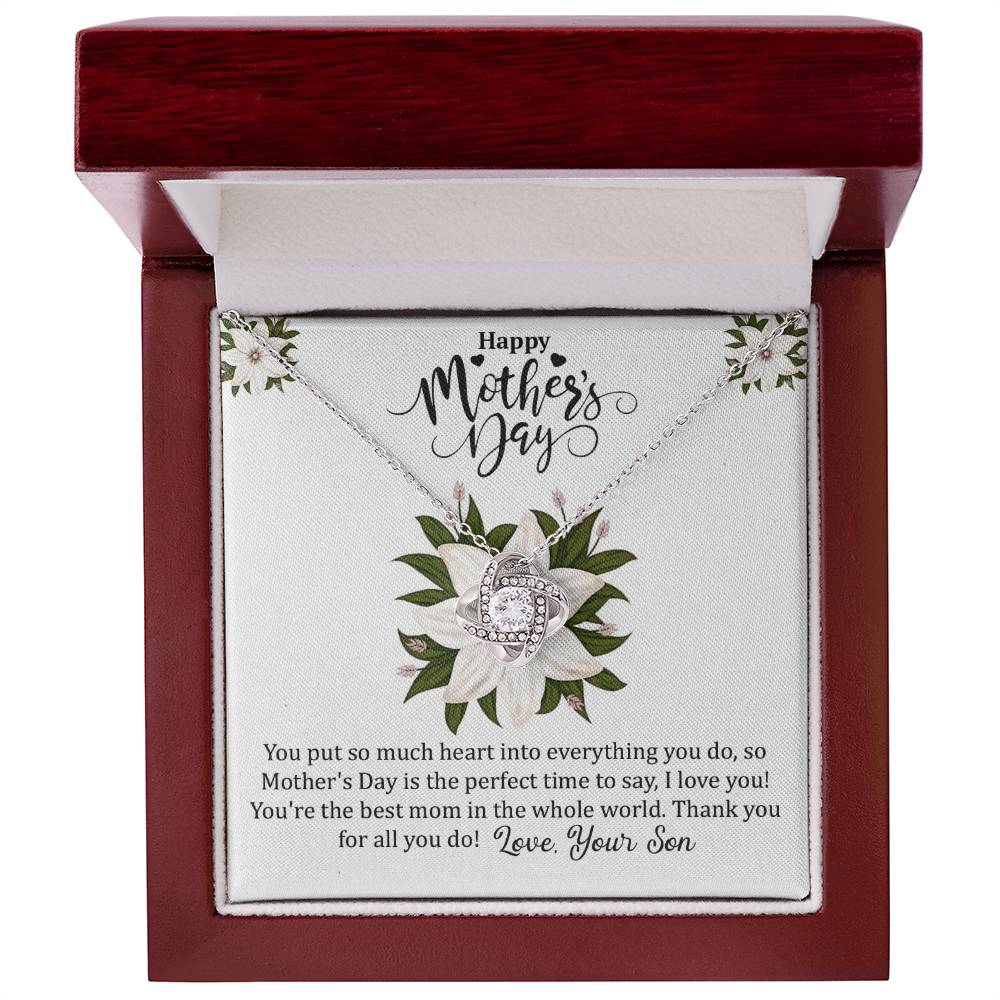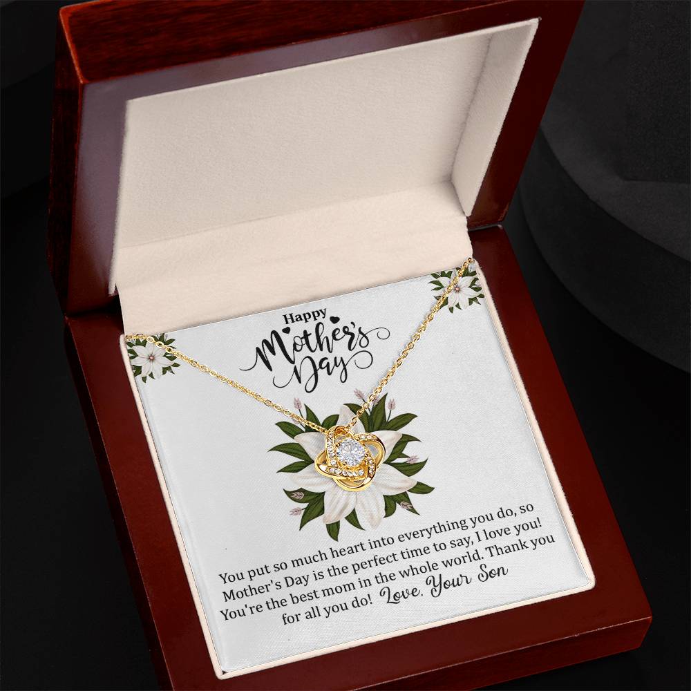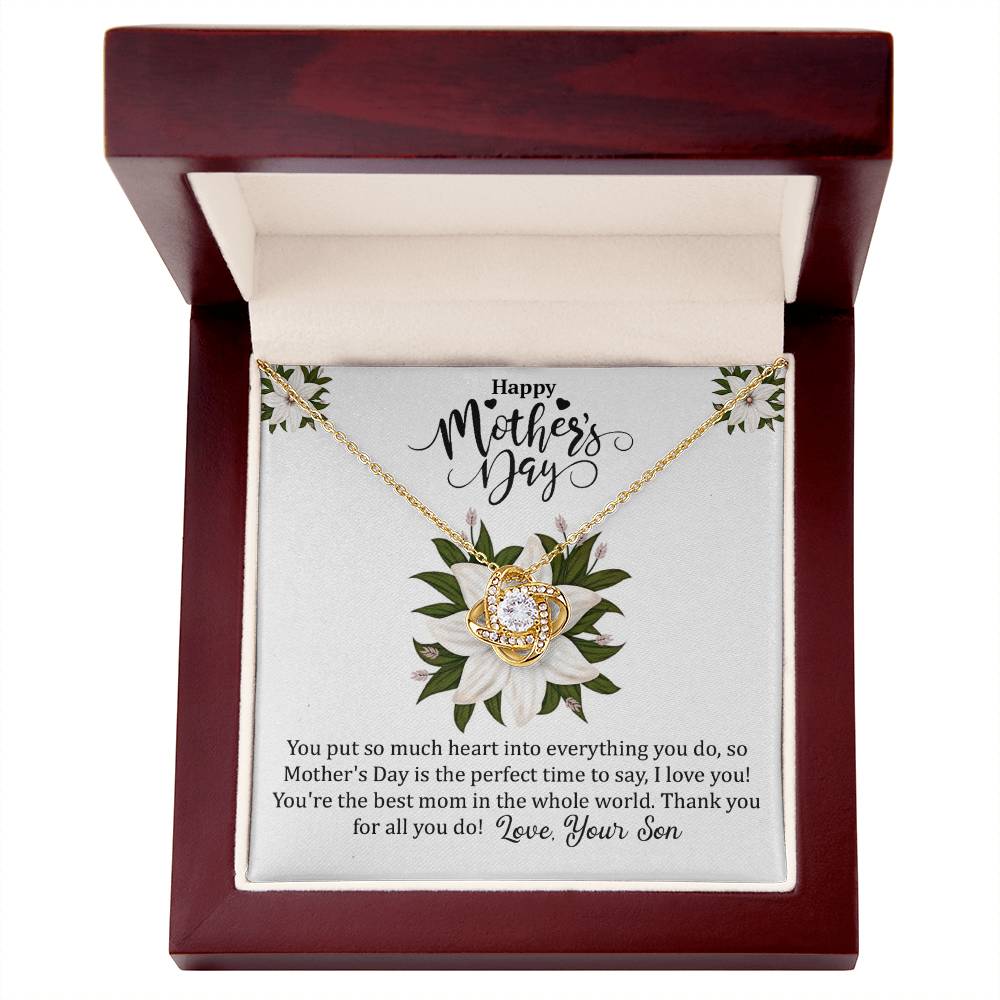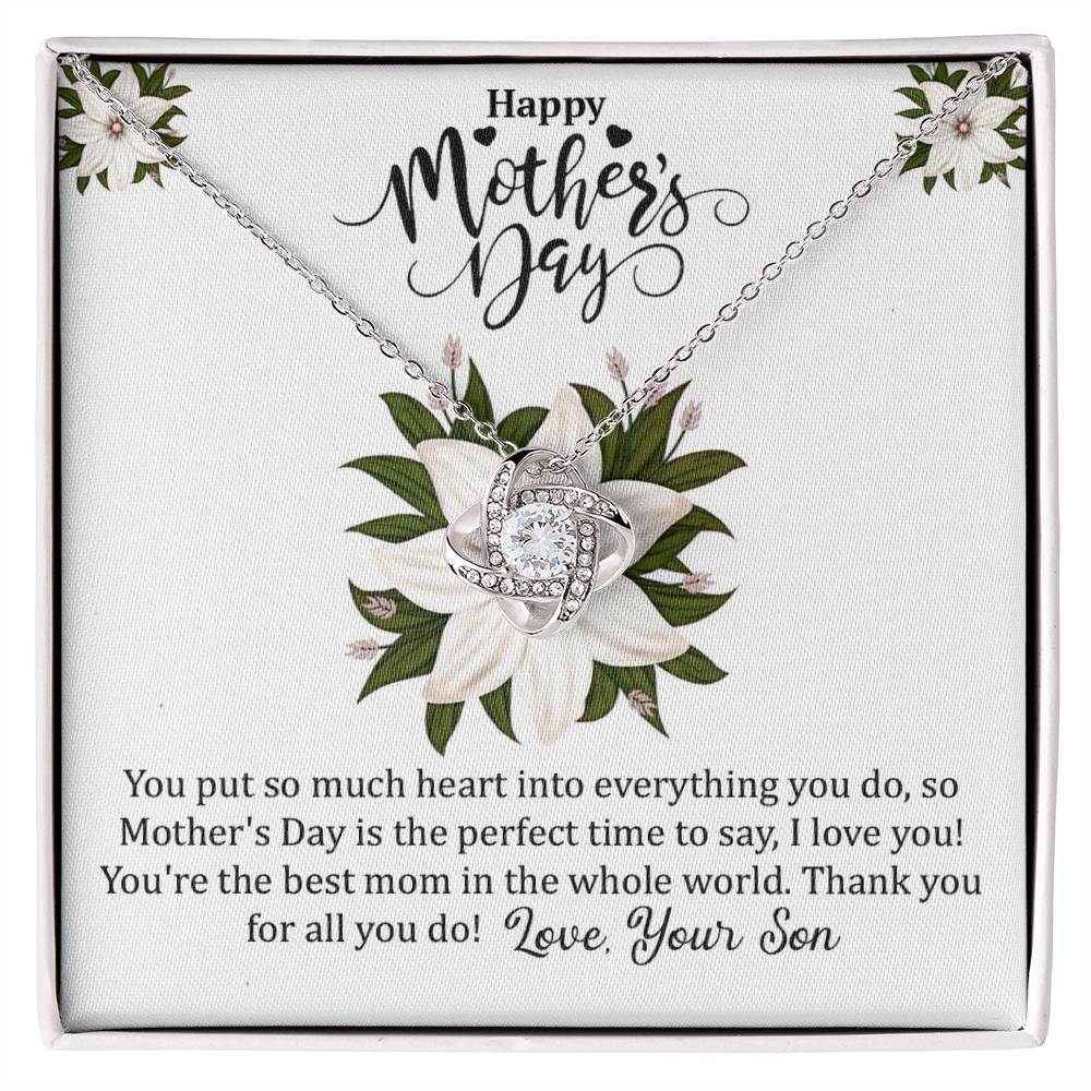 Imagine her reaction receiving this beautiful Love Knot Necklace. Representing an unbreakable bond between two souls, this piece features a beautiful pendant embellished with premium cubic zirconia crystals. Surprise your loved one with this gorgeous gift today!