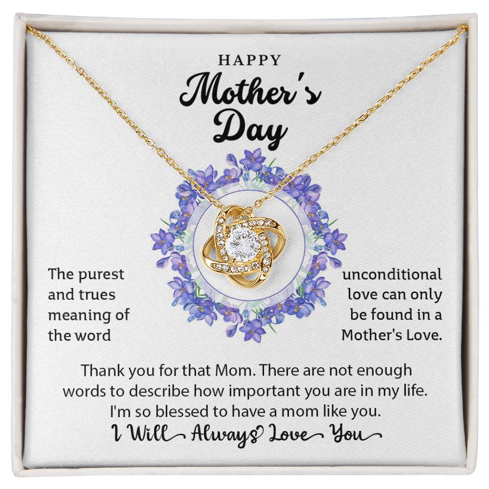 The purest and trues meaning of the word unconditional love can only be found in a Mother's Love.