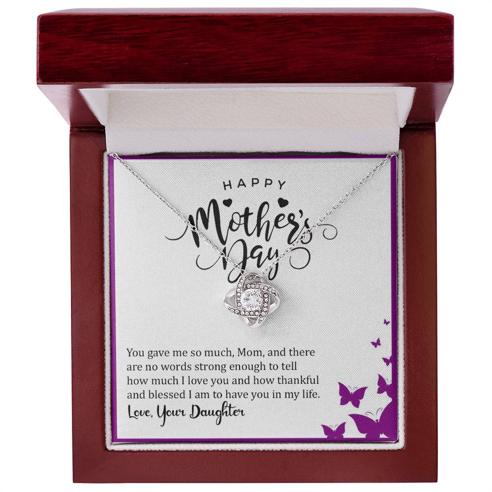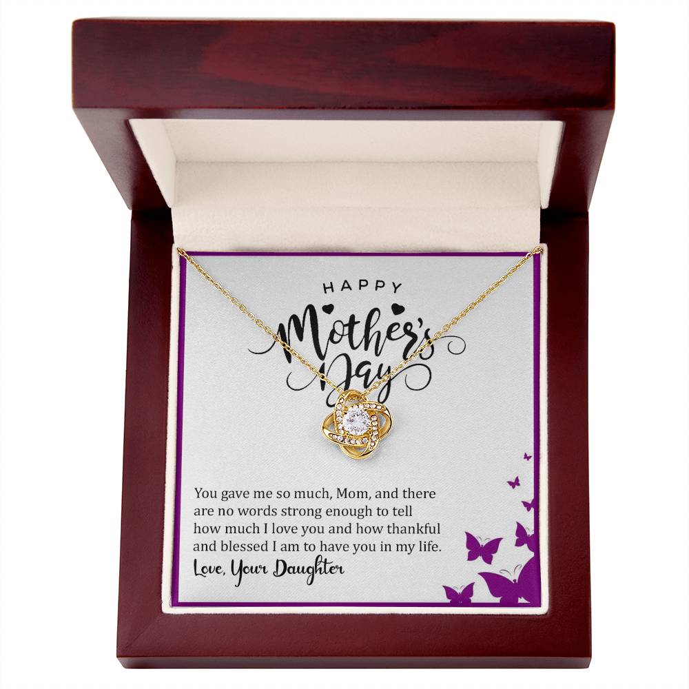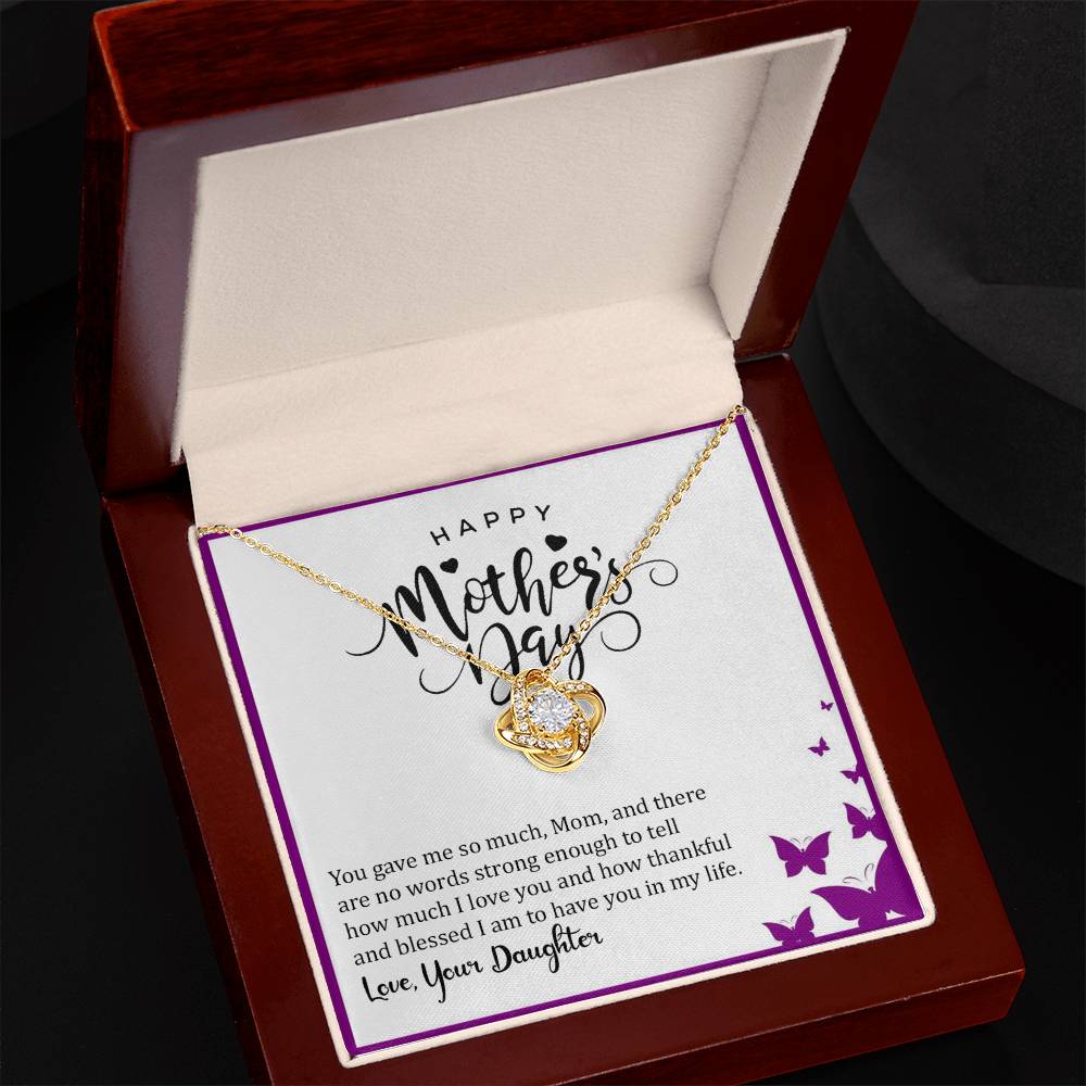 Imagine her reaction receiving this beautiful Love Knot Necklace. Representing an unbreakable bond between two souls, this piece features a beautiful pendant embellished with premium cubic zirconia crystals. Surprise your loved one with this gorgeous gift today!