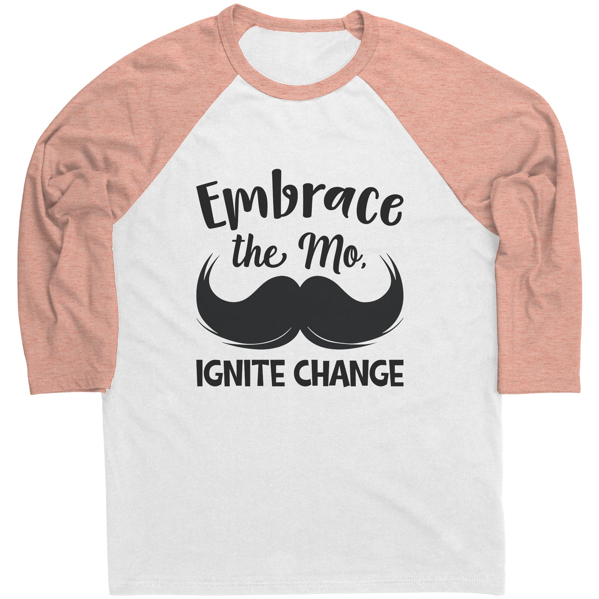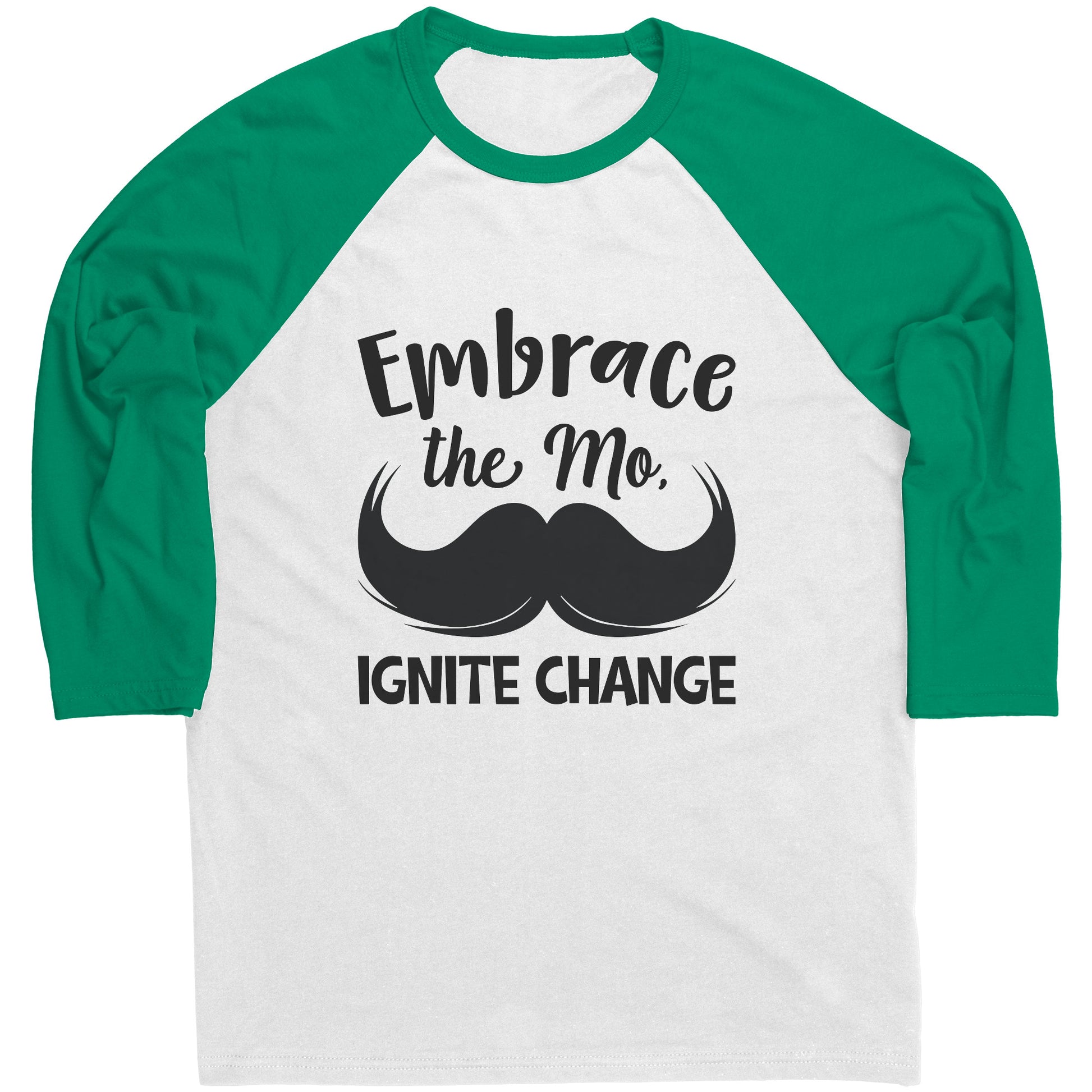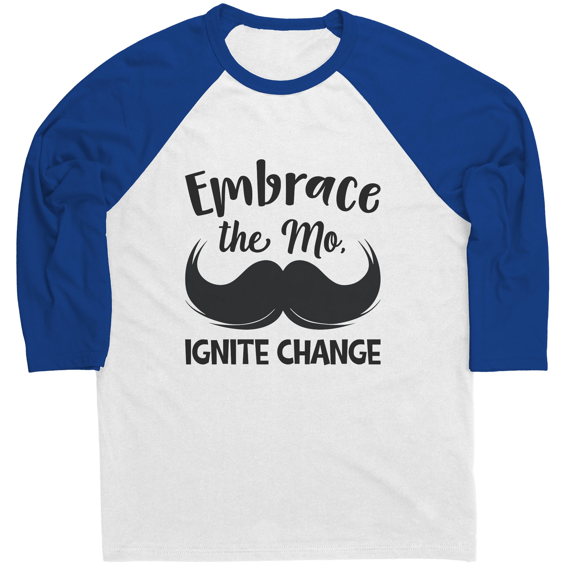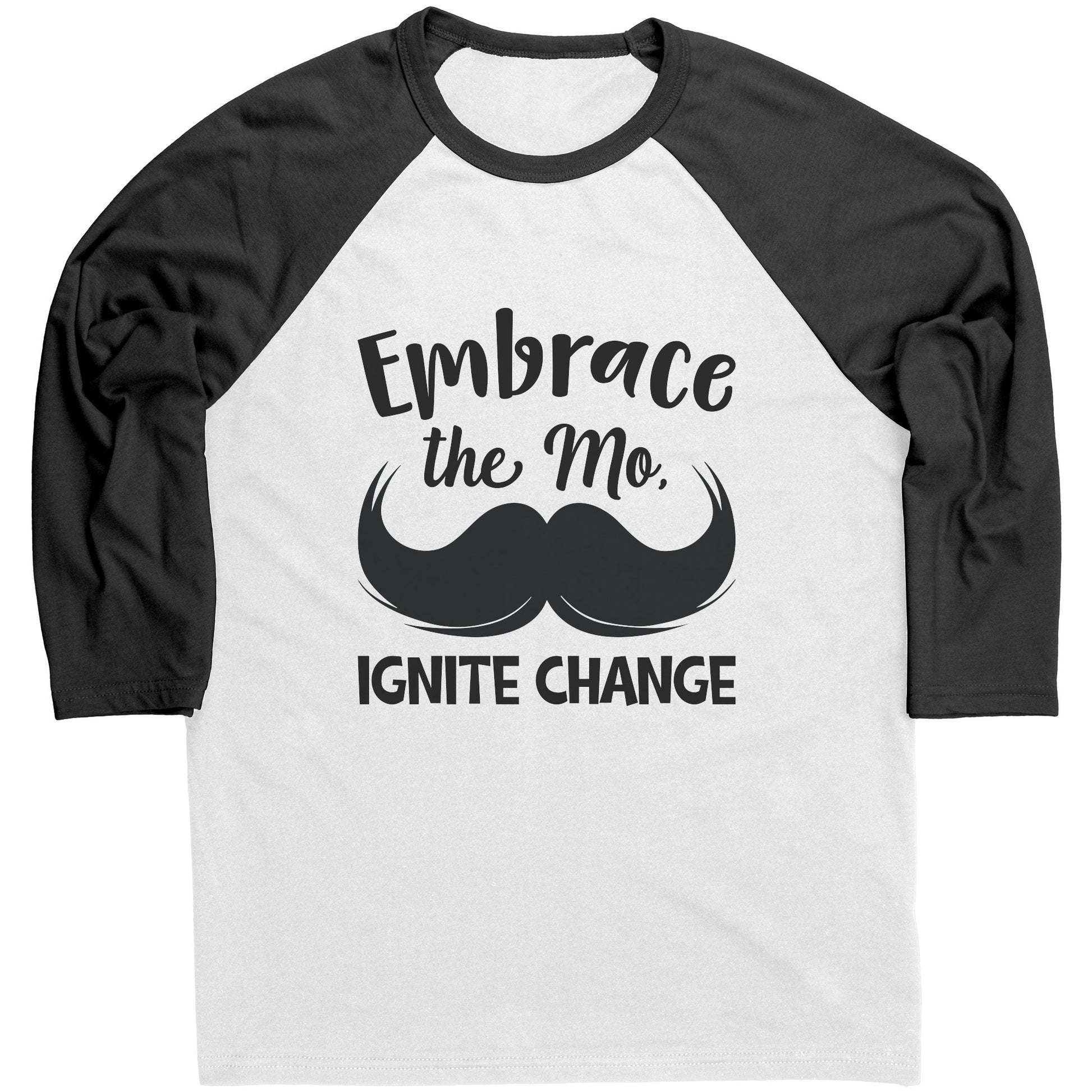 Mens Raglan Movember T-shirt Embrace the M, Ignite Change