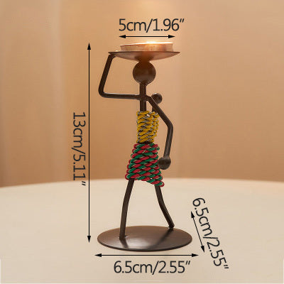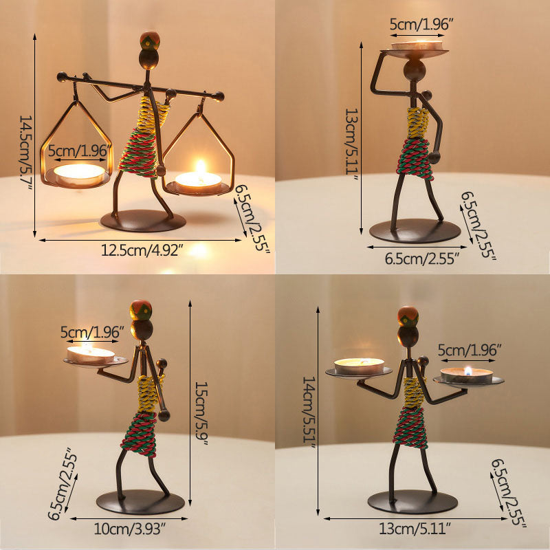 Product Parameters:Name: Modern Iron Man CandlestickMaterial: IronWeight: About 90 g / 90 g / 120 g / 80 gSize: About 15 cm / 5.5 inPackaging: Carton Box + Bubble Bag + Foam