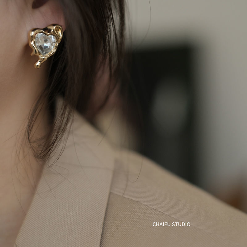 These sweet and cool earrings are perfect for expressing your love. The red crystals are symbols of passion and love, while the molten metal gives them a unique and stylish look. They're also great for adding a touch of glamour to any outfit.