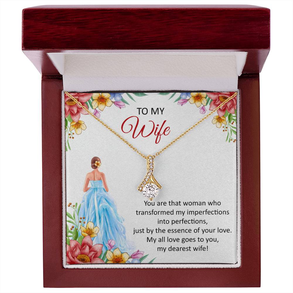 Imagine her reaction when she opens this stunning gift! The Alluring Beauty necklace features a petite ribbon shaped pendant that is sure to dazzle your special someone. Whether it's a birthday or anniversary, make sure to get her a gift she will love for years to come.