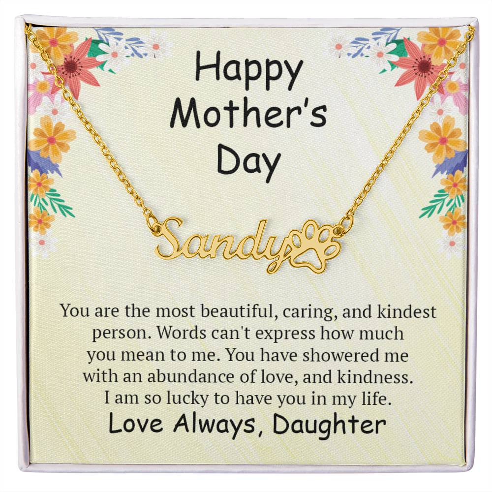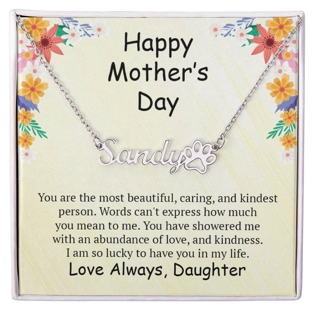 A thoughtful, custom gift is the perfect way to show your appreciation for your pet lover! Our Personalized Paw Print Name Necklace is a chic and stylish accessory that suits any occasion, whether it's a special holiday, anniversary, or simply a spontaneous gesture of affection. With its unique design and personalized touch, this necklace is sure to be a cherished and treasured keepsake for years to come.