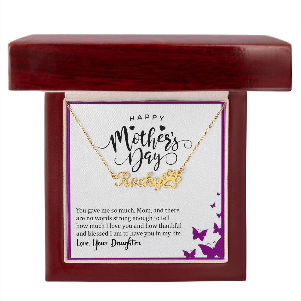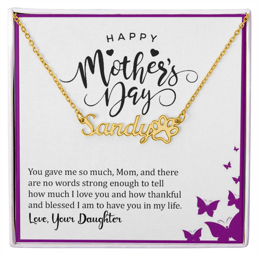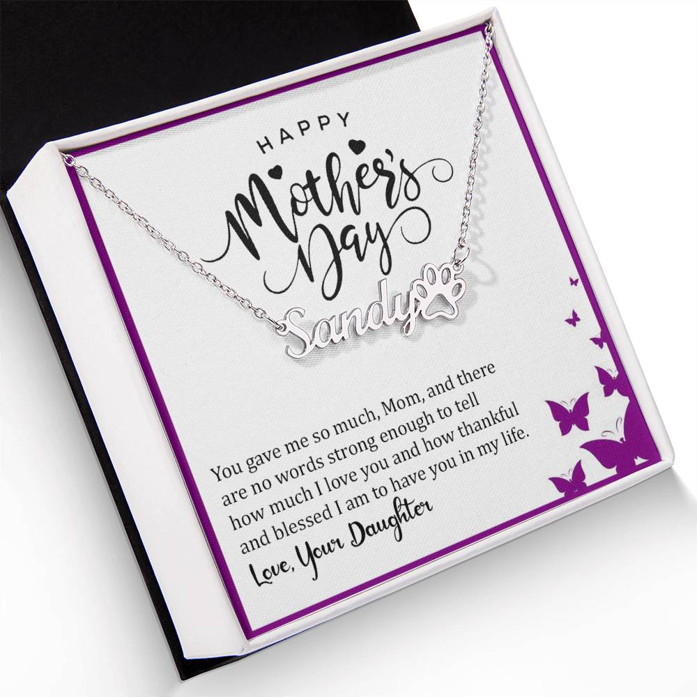 A thoughtful, custom gift is the perfect way to show your appreciation for your pet lover! Our Personalized Paw Print Name Necklace is a chic and stylish accessory that suits any occasion, whether it's a special holiday, anniversary, or simply a spontaneous gesture of affection. With its unique design and personalized touch, this necklace is sure to be a cherished and treasured keepsake for years to come.