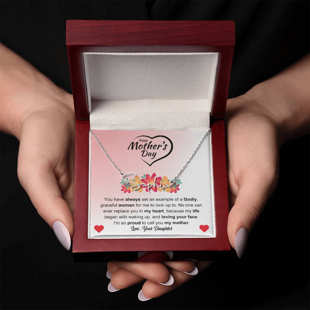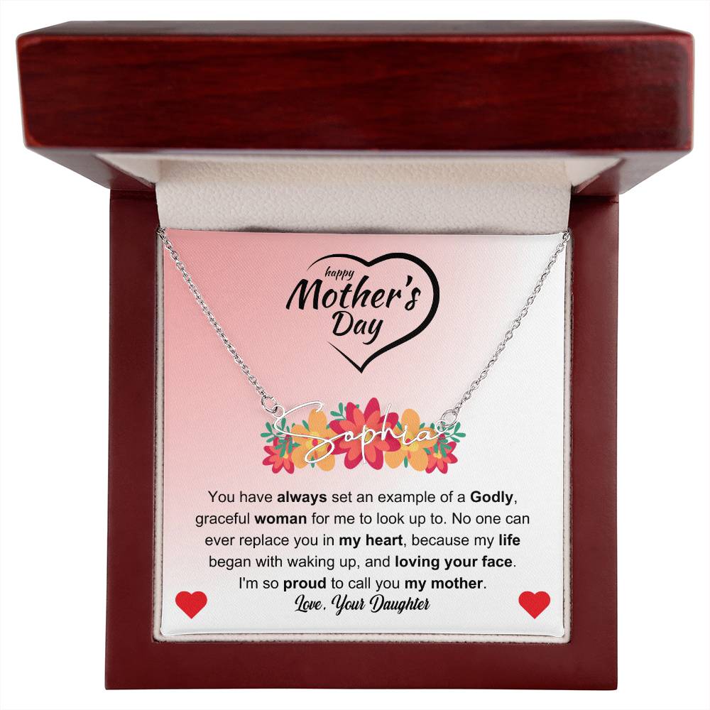 You have always set an example of a Godly, graceful woman for me to look up to. No one can ever replace you in my heart, because my life began with waking up, and loving your face. I'm so proud to call you my mother. Love Your Daughter