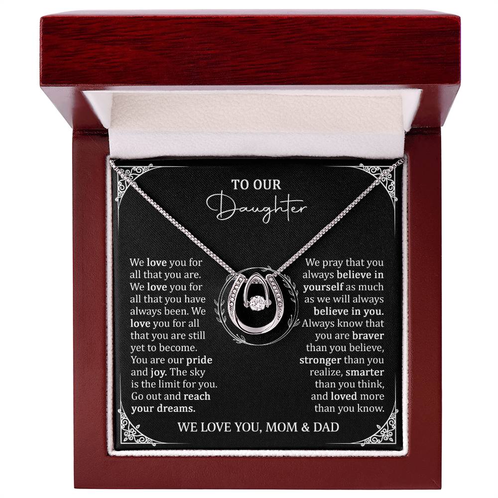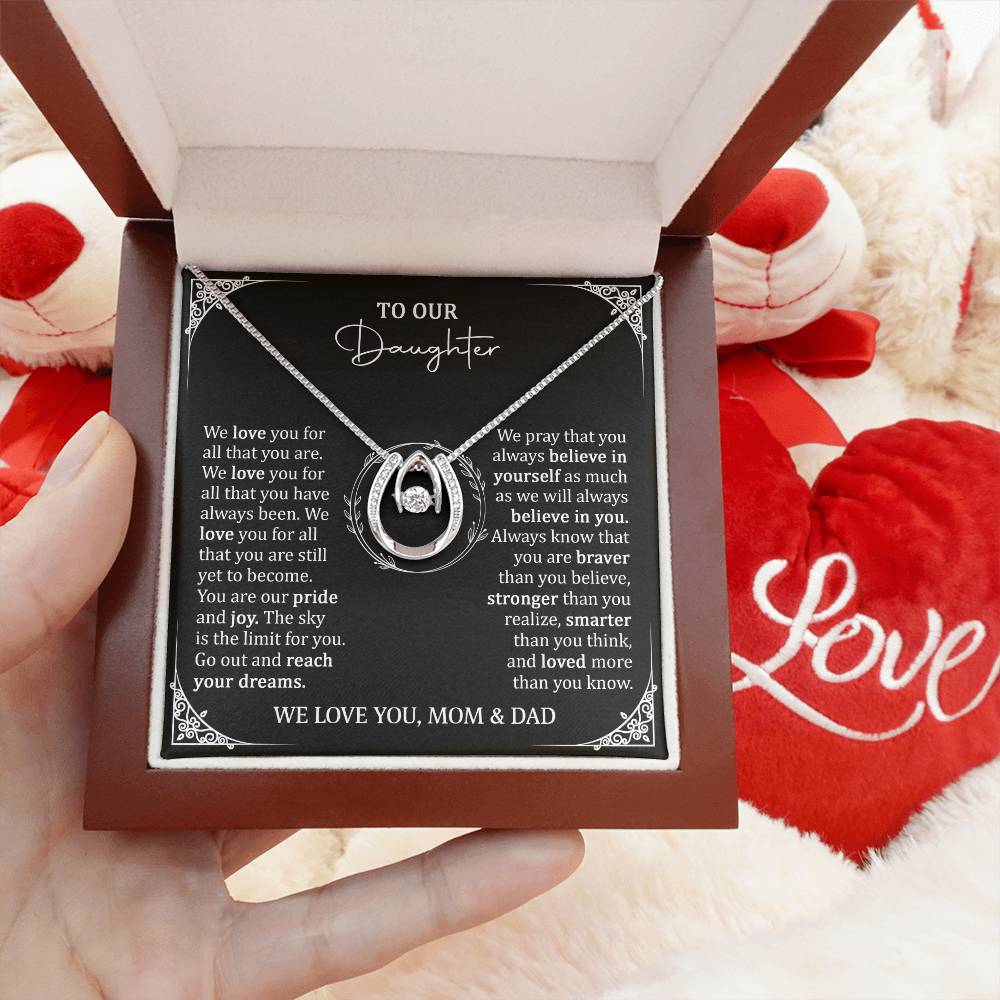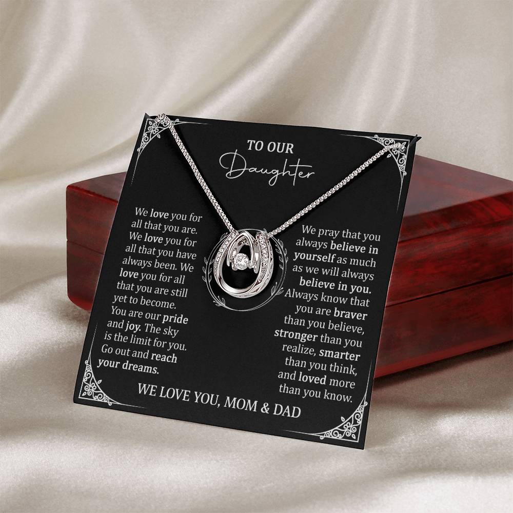 Many refer to it as 'fate', 'destiny', or 'good fortune'. This pendant necklace serves as a reminder of the special person in your life. This necklace is a perfect way to show your daughter your gratitude for the journey of life, whether it be a celebration or just an ordinary day. She will certainly feel special wearing it!