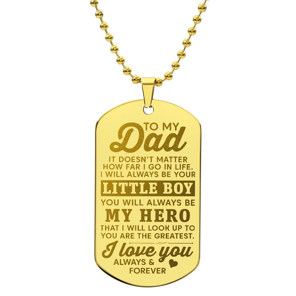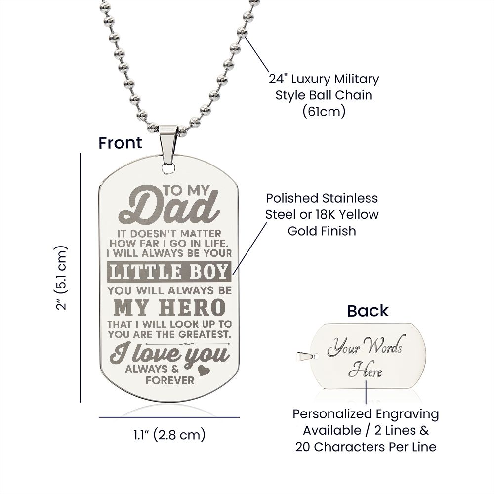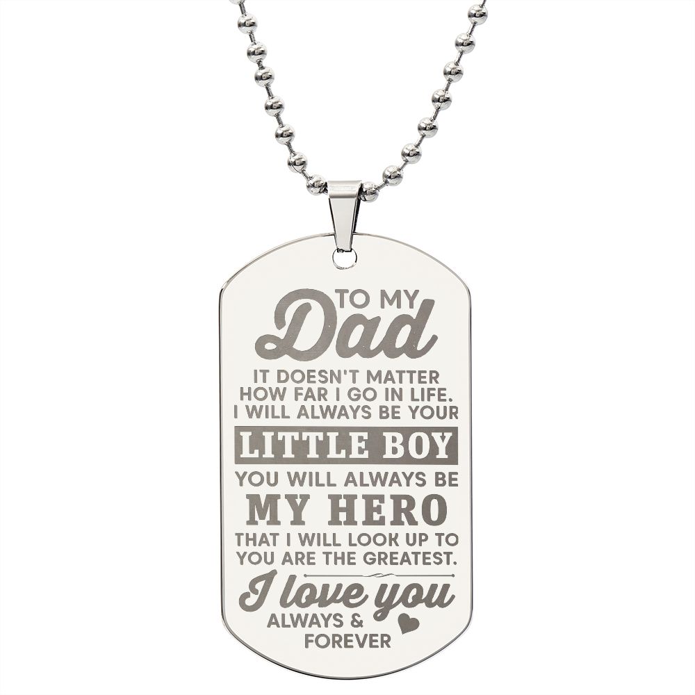 Engraving option is available, you can choose to personalize onto the back of the pendant your dad's name, a special date, or anything else you want to remember and keep you close to their heart.