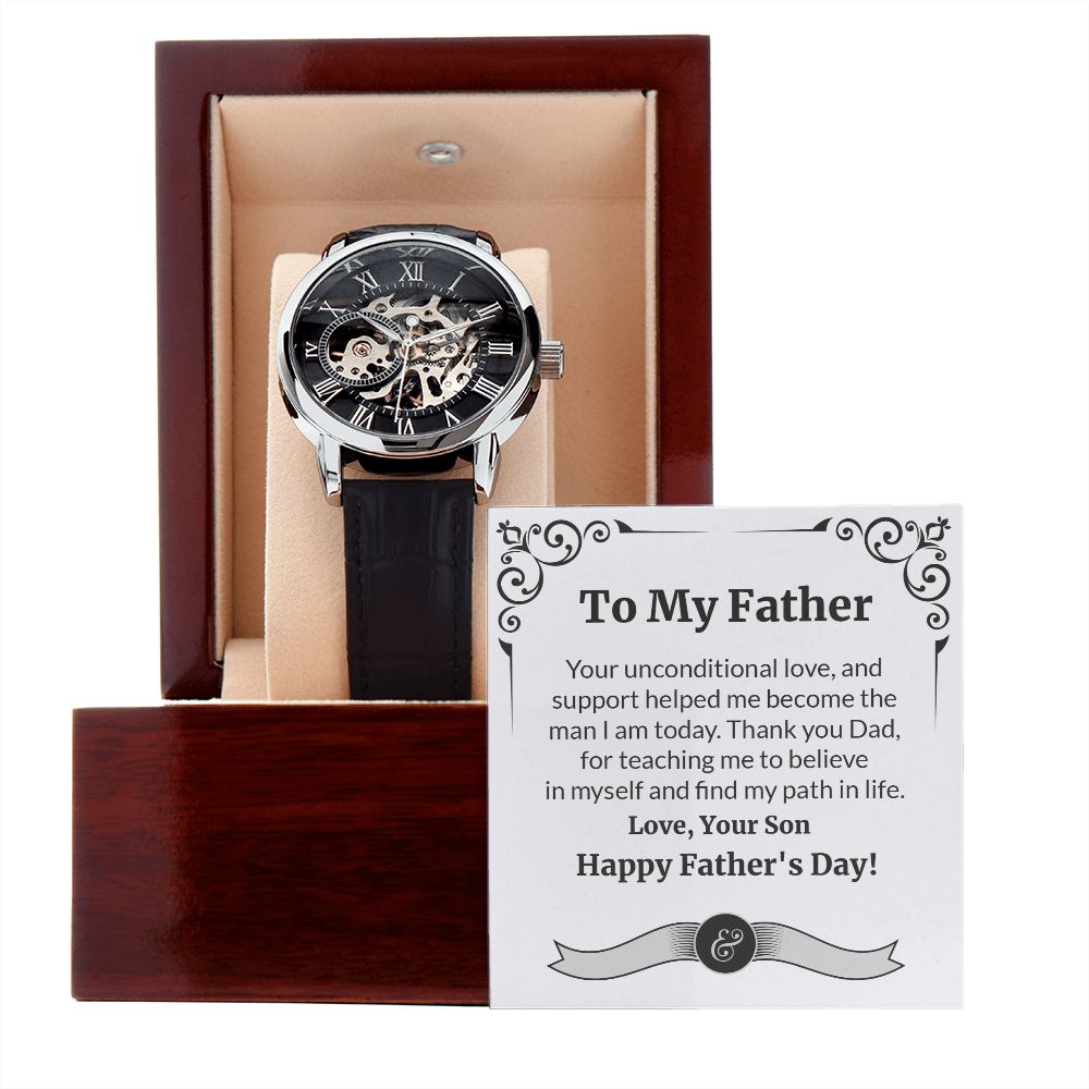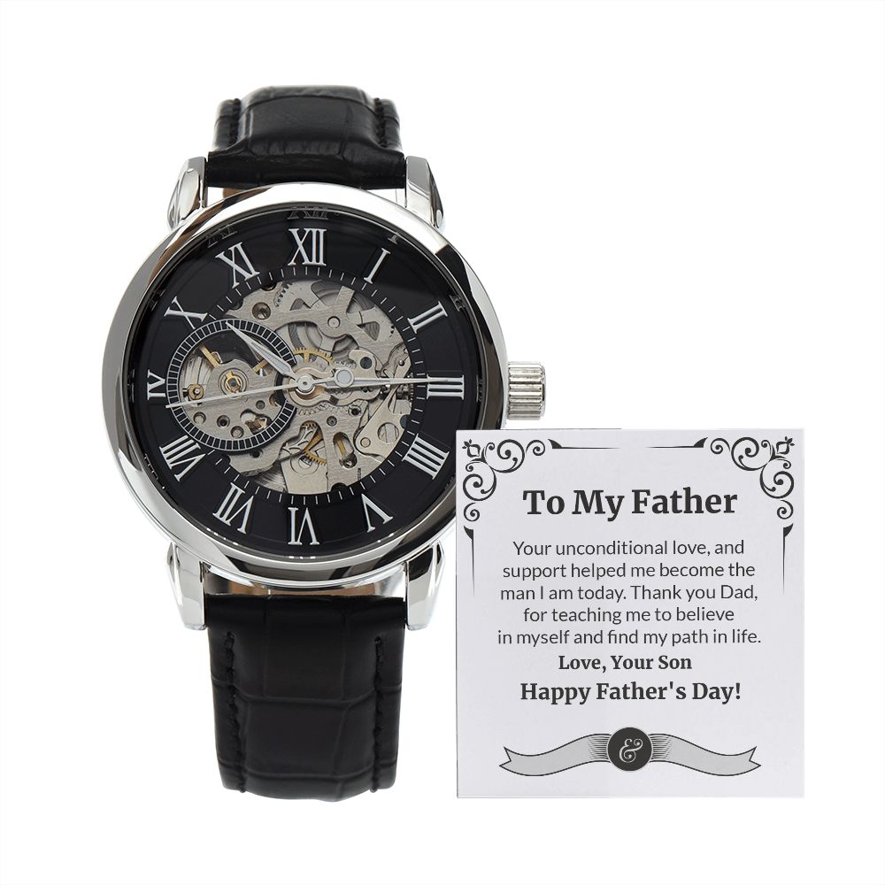 Make this Father's Day one to remember with the classic and stylish Men's Openwork Watch. With its sleek design and comfortable fit, this timeless accessory is sure to be a welcome addition to your father's wardrobe. Surprise your dad with a gift that speaks to just how much your love and appreciate him.