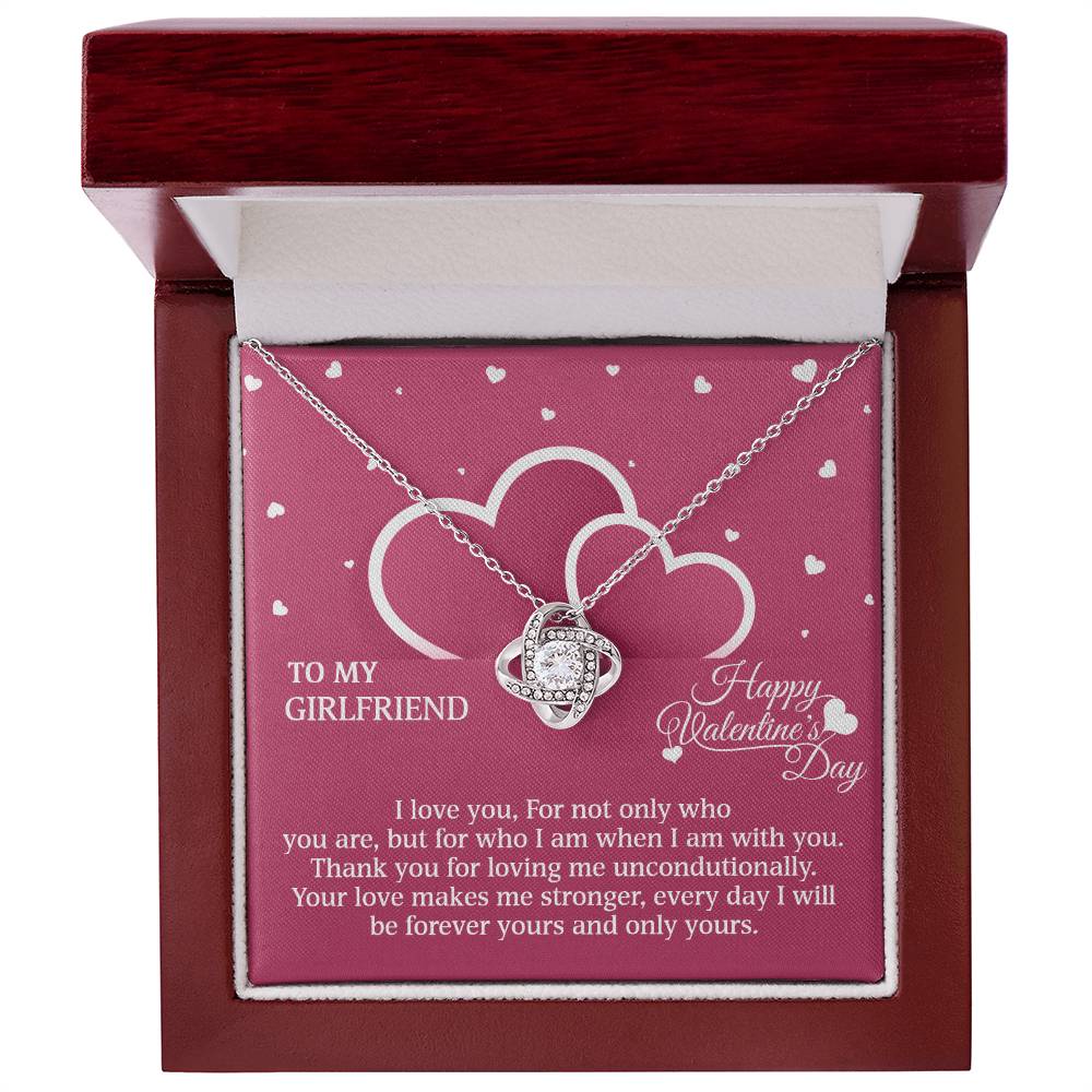 To My Girlfriend Love Knot Necklace Yellow & White Gold