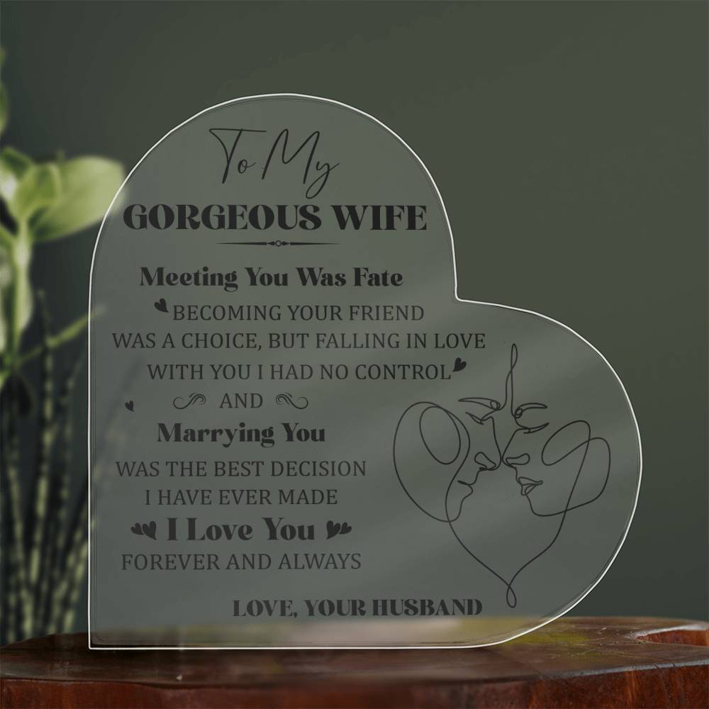 "To My Gorgeous Wife, Meeting You Was Fate, BECOMING YOUR FRIEND WAS A CHOICE, BUT FALLING IN LOVE WITH YOU I HAD NO CONTROL AND Marrying You WAS THE BEST DECISION I HAVE MADE. I Love You FOREVER AND ALWAYS. LOVE, YOUR HUSBAND."