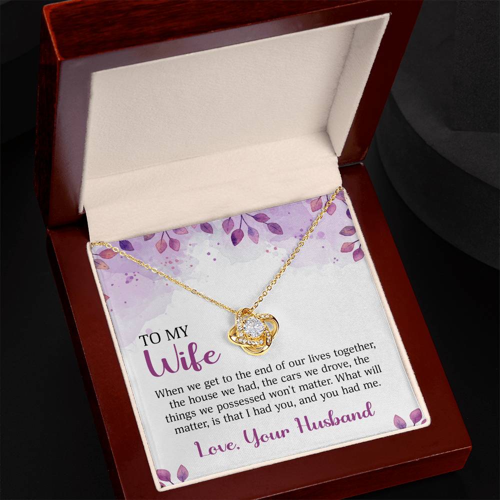 When we get to the end of our lives together, the house we had, the cars we drove, the things we possessed won't matter. What will matter, is that I had you, and you had me.