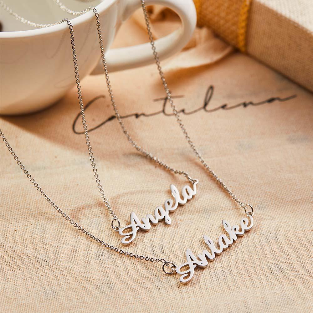 Keywords: Personalized necklace, double name necklace, friend and girlfriend gifts, customizable jewelry, unique gift, special occasion present, custom name pendant, personalized accessory, sentimental jewelry, meaningful gift, personalized gift for her, custom engraved necklace, name necklace for two