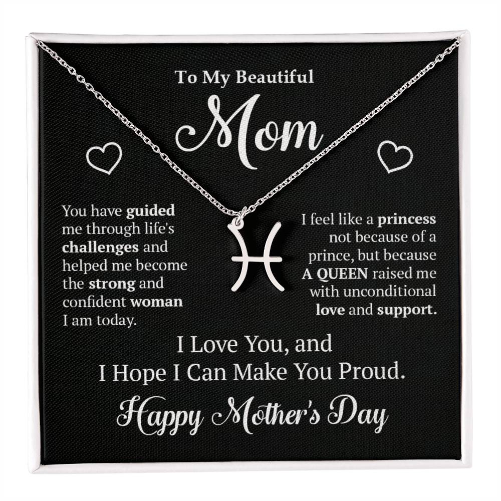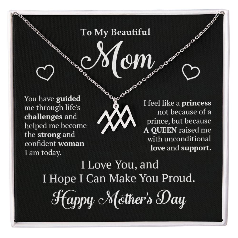 To my Beautiful Mom - You have guided me through life's challenges and helped me become the strong and confident woman I am today. I feel like a princess not because of a prince, but because A QUEEN raised me with unconditional love and support. I Love You, and I Hope I Can Make You Proud. Happy Mother's Day