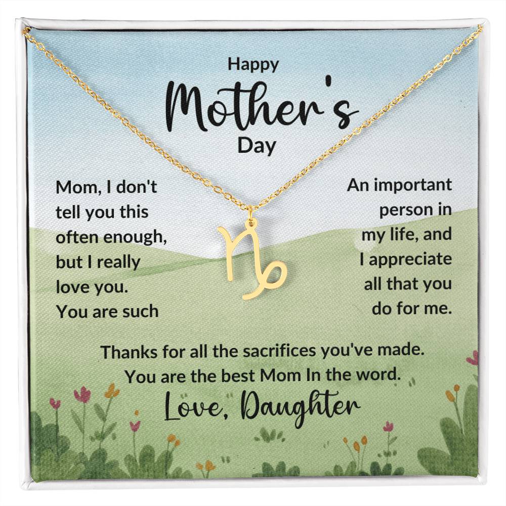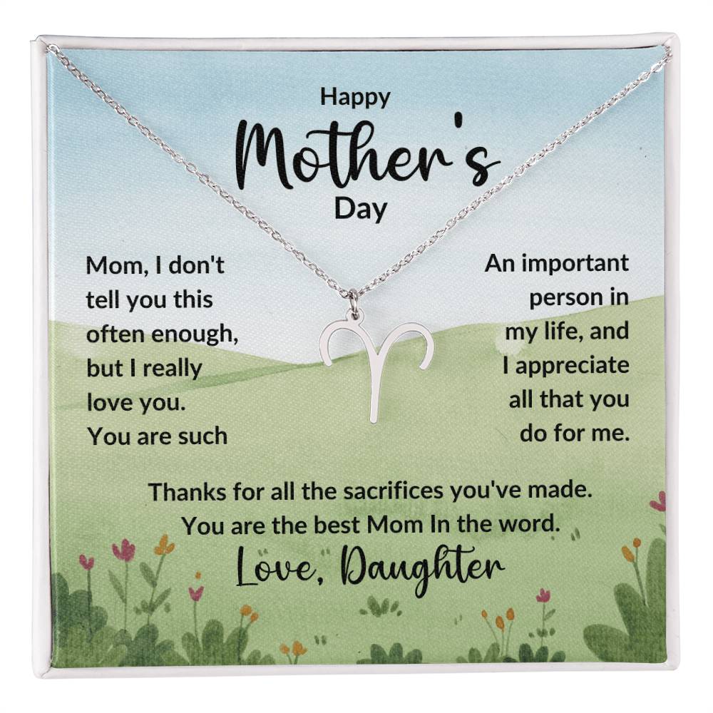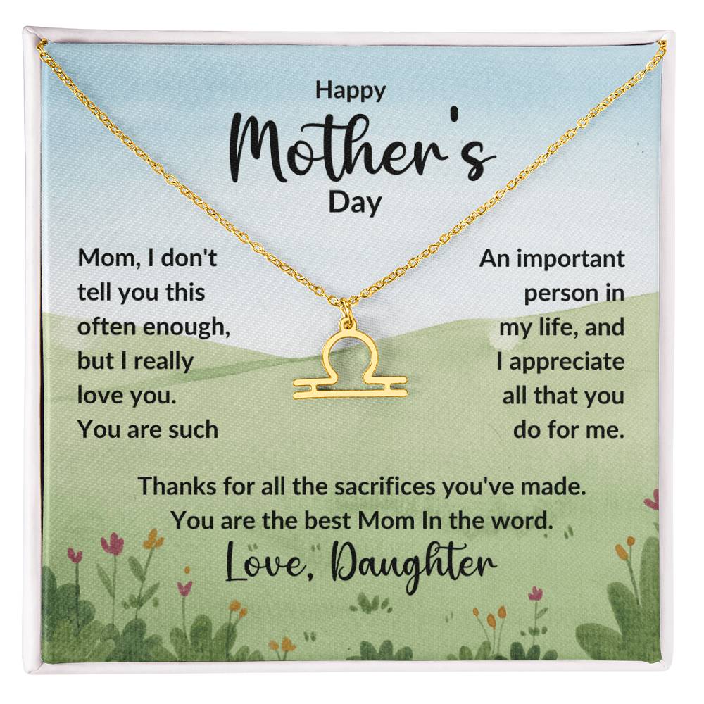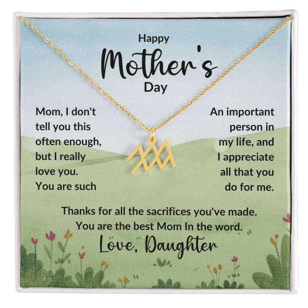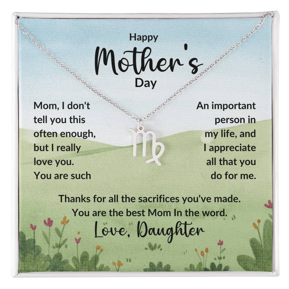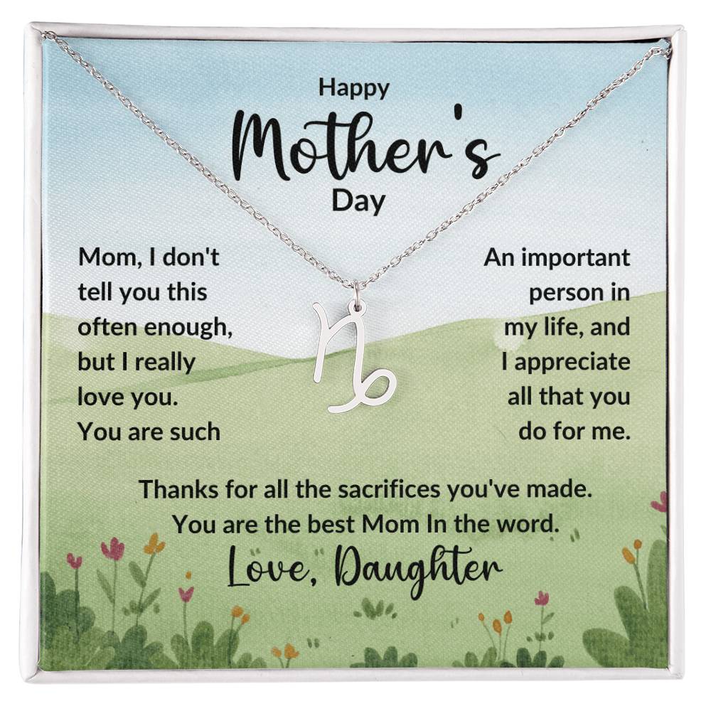 Mom, I don't tell you this often enough, but I really love you. You are such An important person in my life, and I appreciate all that you do for me. Thanks for all the sacrifices you've made. You are the best Mom In the word. Love, Daughter
