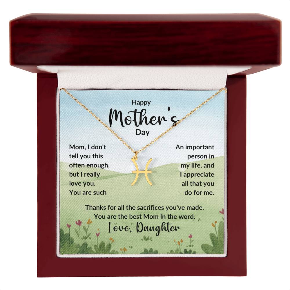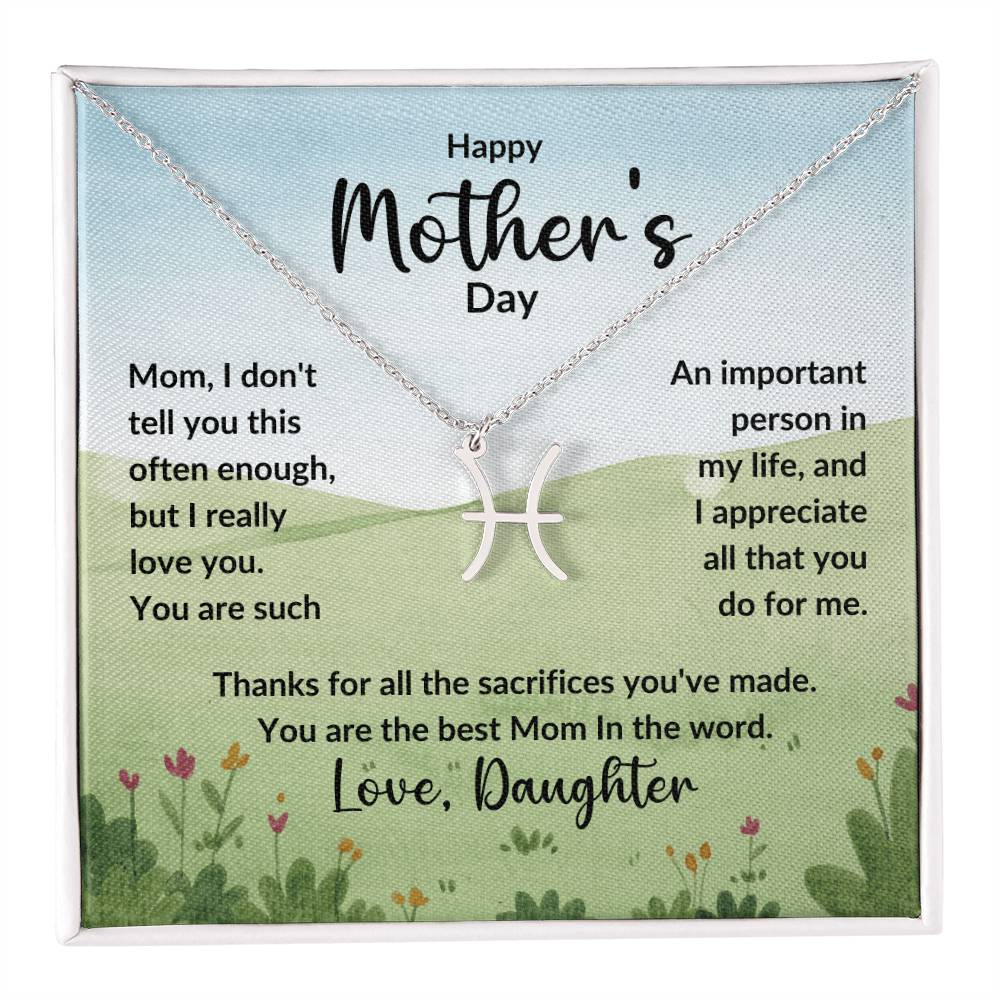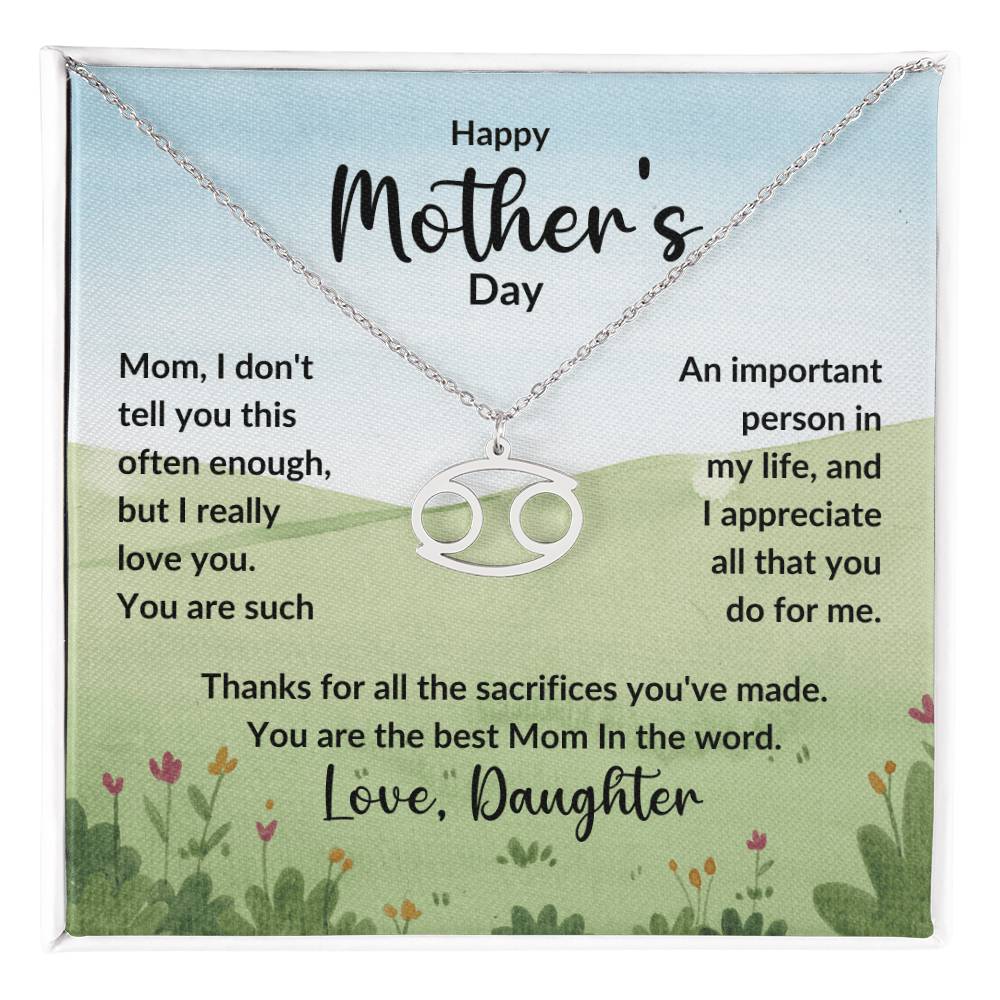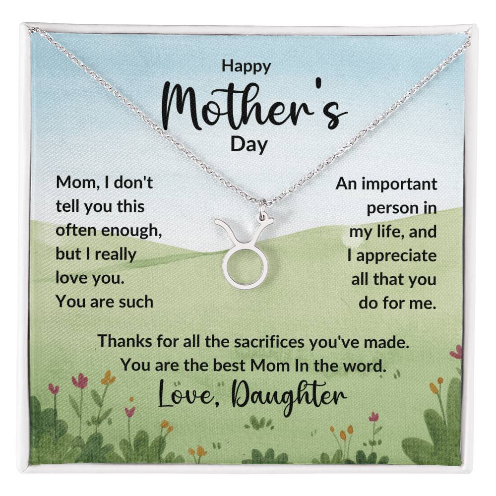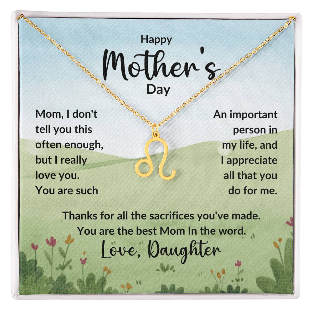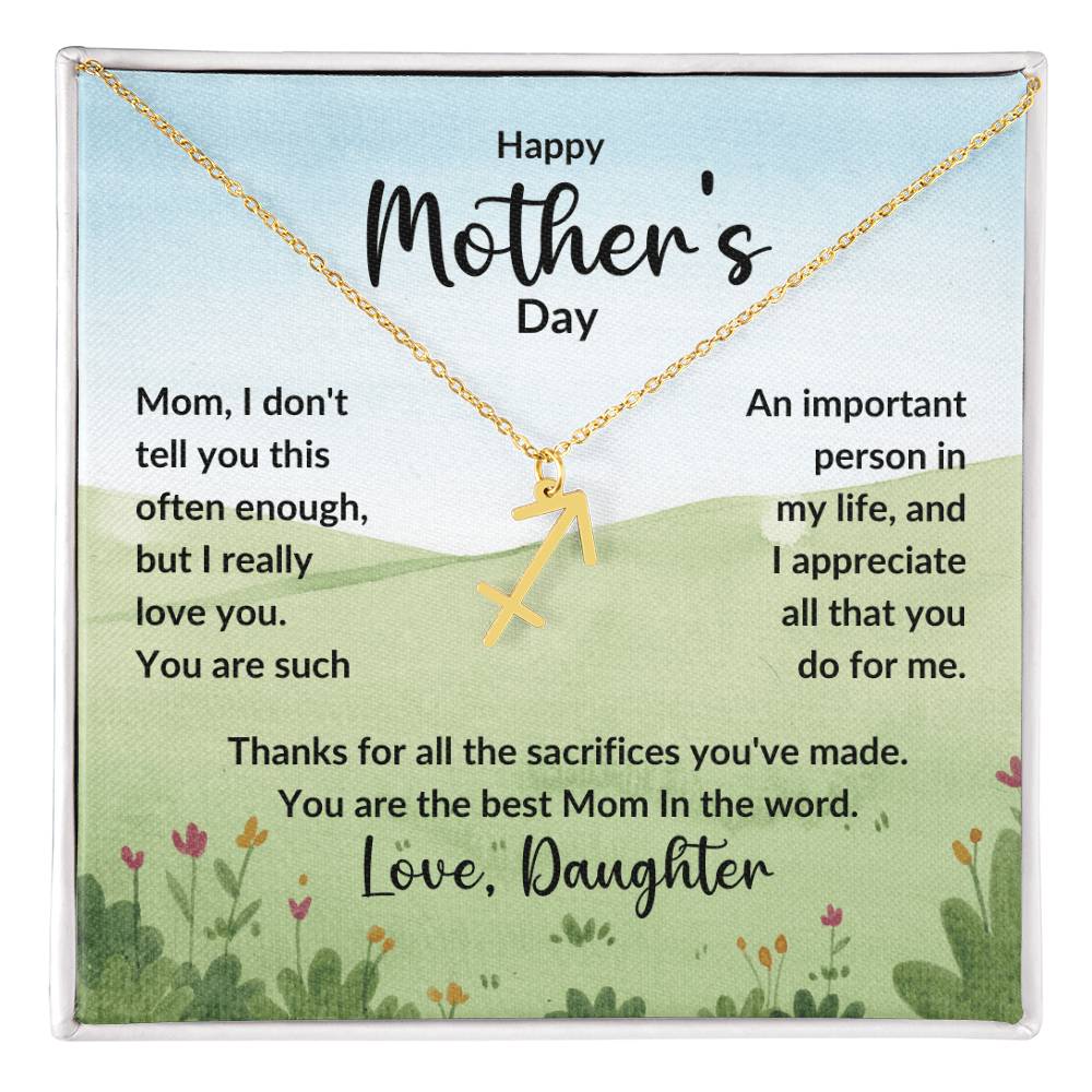 Mom, I don't tell you this often enough, but I really love you. You are such An important person in my life, and I appreciate all that you do for me. Thanks for all the sacrifices you've made. You are the best Mom In the word. Love, Daughter