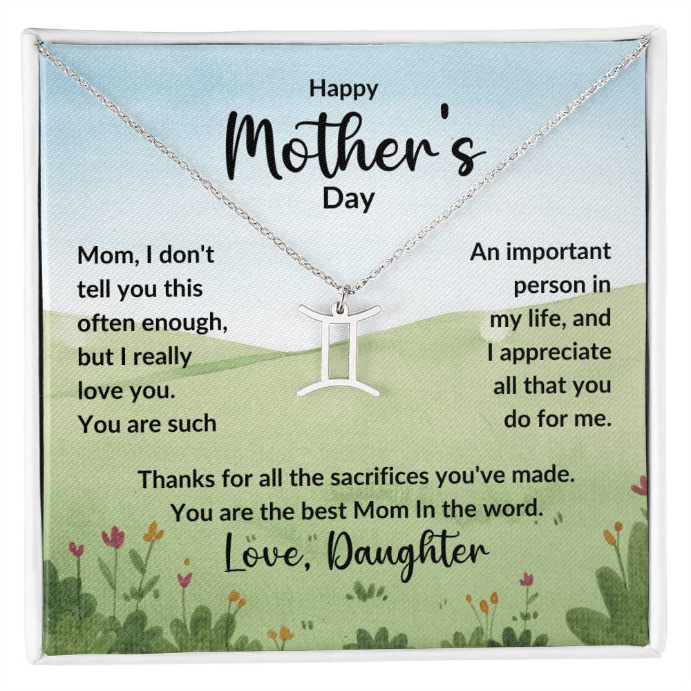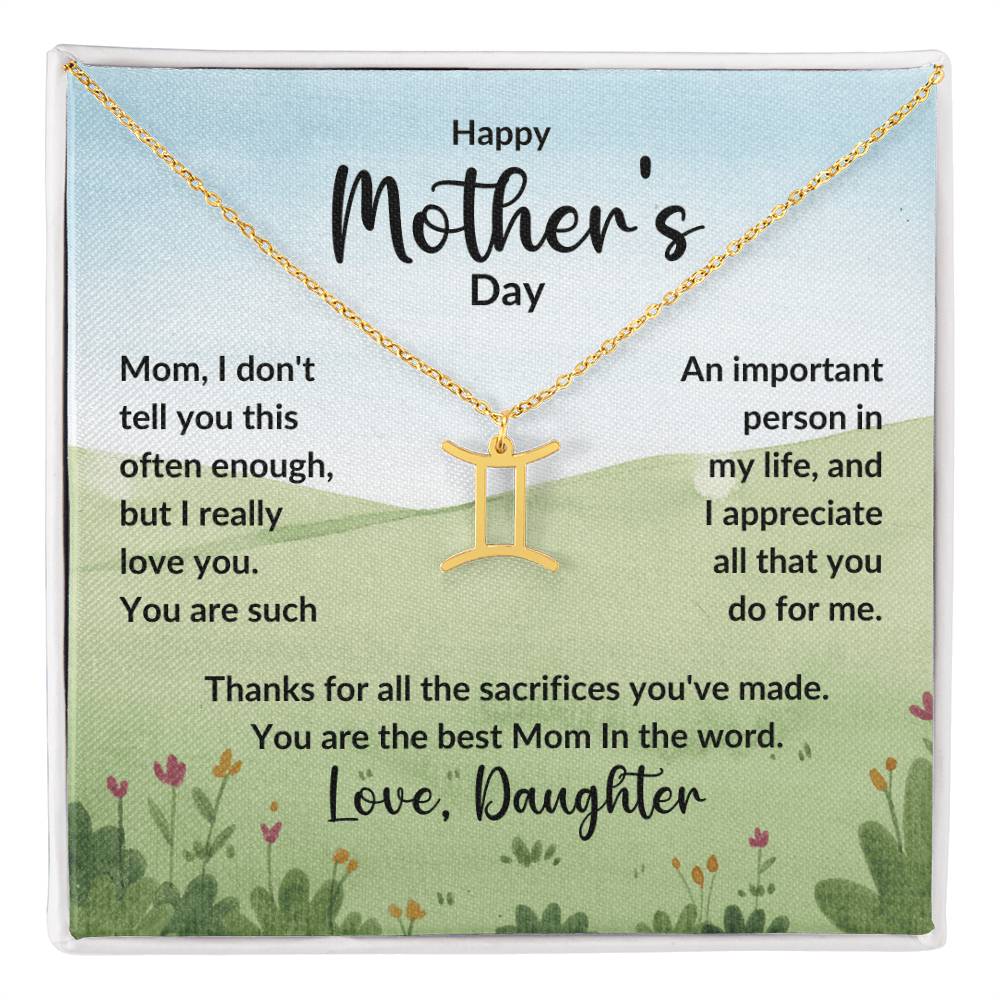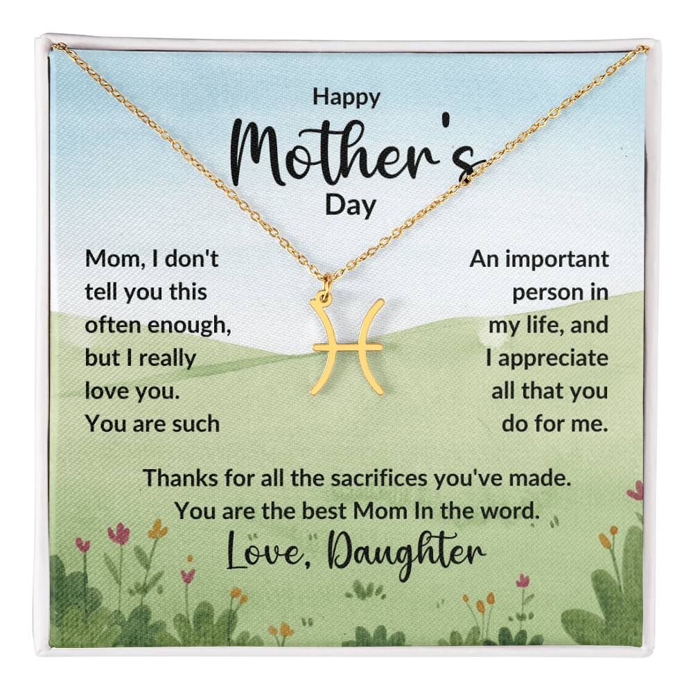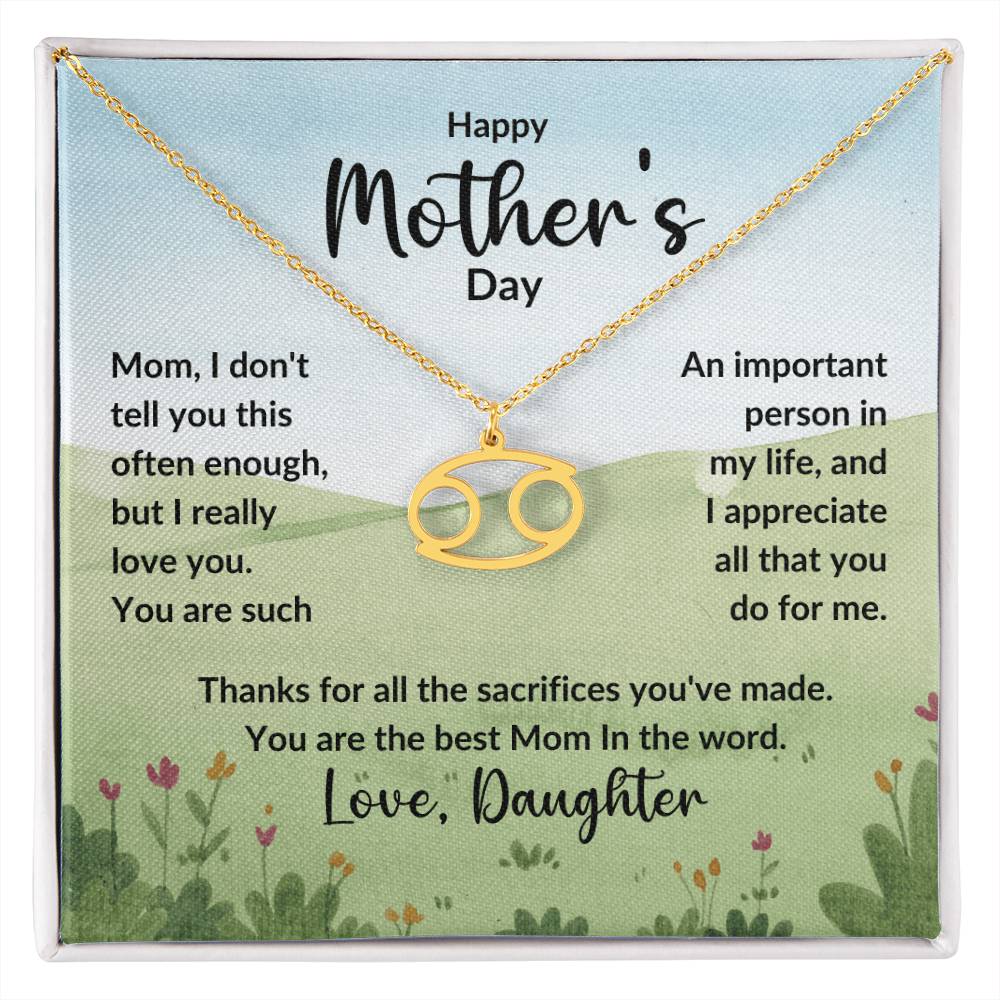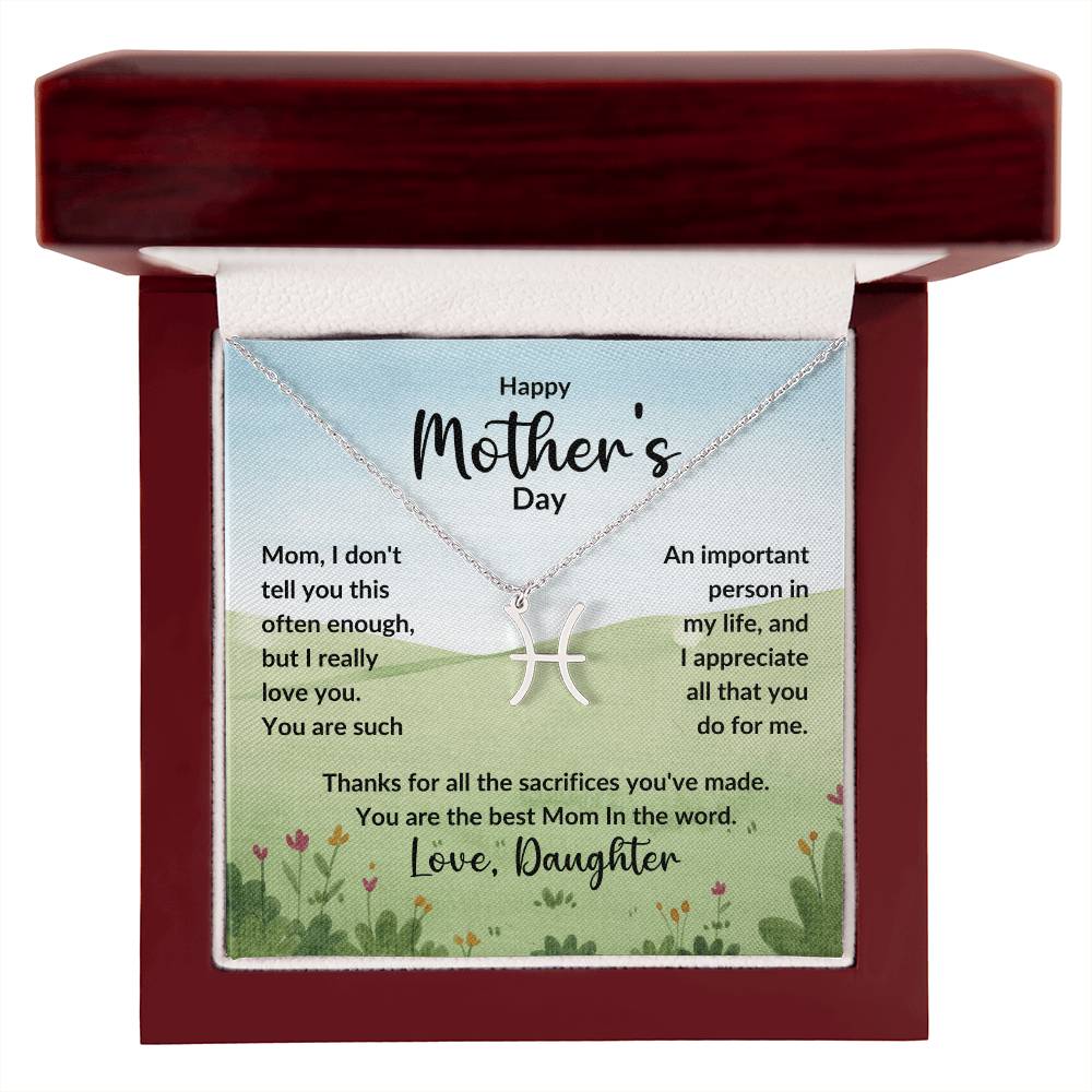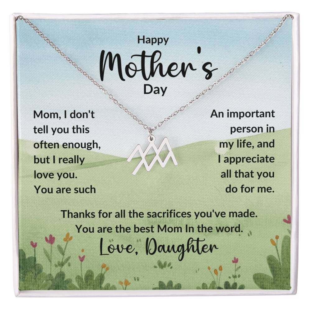 Mom, I don't tell you this often enough, but I really love you. You are such An important person in my life, and I appreciate all that you do for me. Thanks for all the sacrifices you've made. You are the best Mom In the word. Love, Daughter